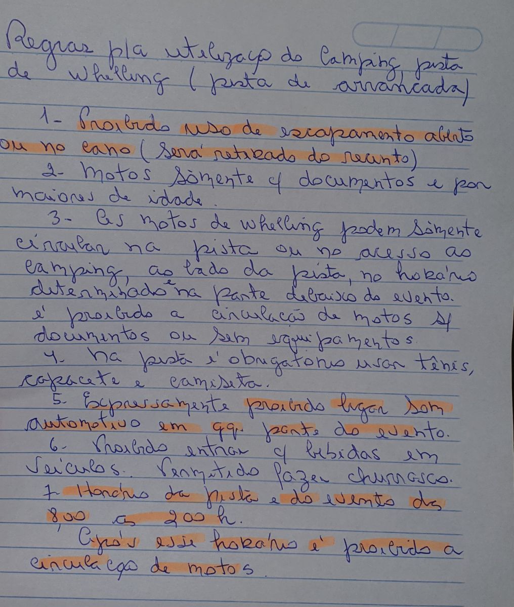 3- Motos só poderiam circular na pista ao lado do camping das 8h às 2h.
