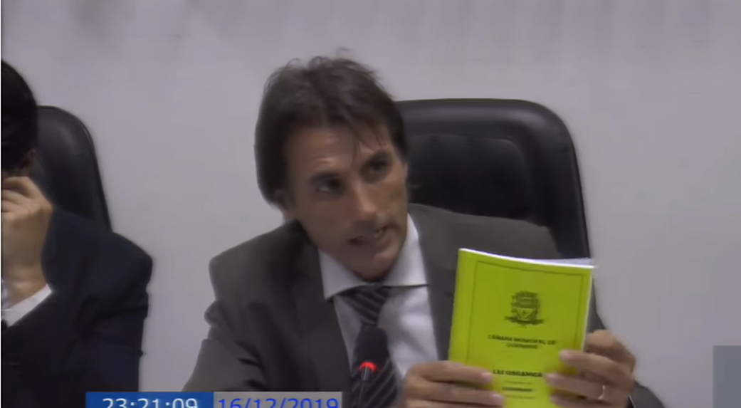 Vereador Flávio Luis Ambrozim mostra Lei Orgânica do Município de Ourinhos (Foto: Reprodução)