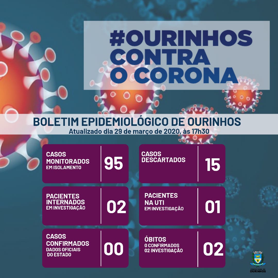 A Prefeitura também divulgou o novo “Boletim Coronavírus” e ainda não tem nenhum caso confirmado na cidade, mas ao todo Ourinhos monitora 95 casos suspeitos, sendo que três permanecem internados. Confira: