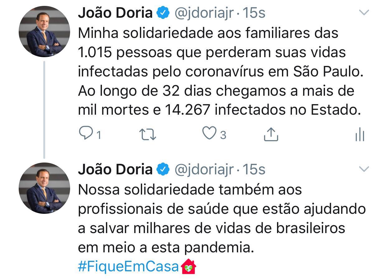 O Governador João Doria rebateu os protestos em sua conta no Twiter e disse ser lamentável e uma afronta a democracia. Confira abaixo: