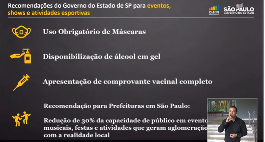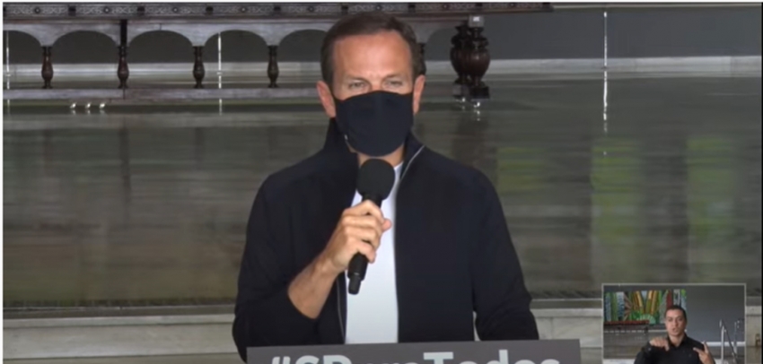 O governador de São Paulo, João Doria (PSDB), concede uma entrevista coletiva nesta quarta-feira, 12, em que anuncia novas medidas devido ao aumento de casos de Covid no estado. Ele recomendou, através de sua equipe, que eventos esportivos, shows e festas no estado sejam realizados com no máximo 70% do público, mas ele deixa a critério de cada prefeito, que deverá definir quais regras e restrições estabelecerão diante de cada quadro municipal.
