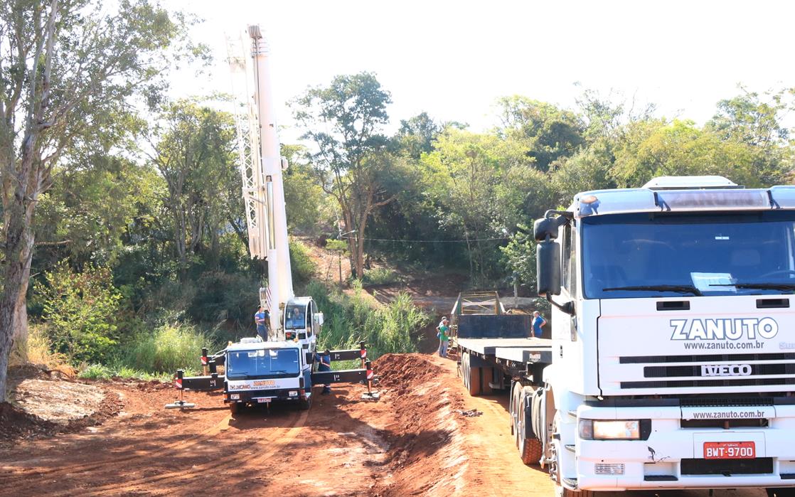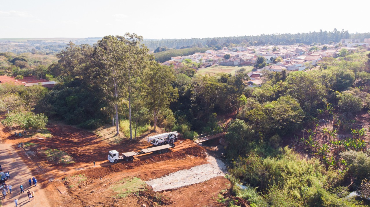 O Prefeito Lucas Pocay (PSD) esteve no local, ao lado do vereador Caio Lima (PSC), averiguando a fixação da passarela que precisou ser içada por um guindaste cedido pelo empresário Celso Zanuto.