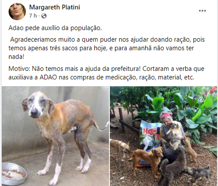 Já ADAO (Associação Defensora dos Animais de Ourinhos), que é administrada pela Dona Conceição, que cuida de 522 cachorros, de acordo com informações, não está mais recebendo ajuda da Prefeitura de Ourinhos, que disponibilizava o valor de R$15 mil mensais, que auxiliava nas despeças com a manutenção do local, que fica na antiga estrada da Guaraiuva, na região do Santos Dumont.