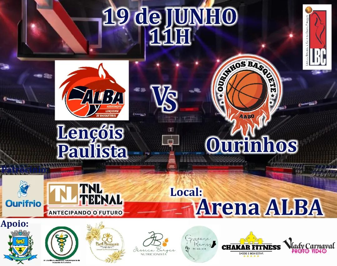 A LBC (Liga de Basquete Centro Oeste Paulista) confirmou nesta quinta-feira, 9, os dias e horários das duas próximas partidas do Ourinhos Basquete Feminino na competição regional. O próximo jogo contra o time de Lençóis Paulista, que estava agendado para o próximo domingo, dia 12 de junho, foi transferido para o domingo seguinte, dia 19, às 11h na Arena ALBA, na casa das adversárias.