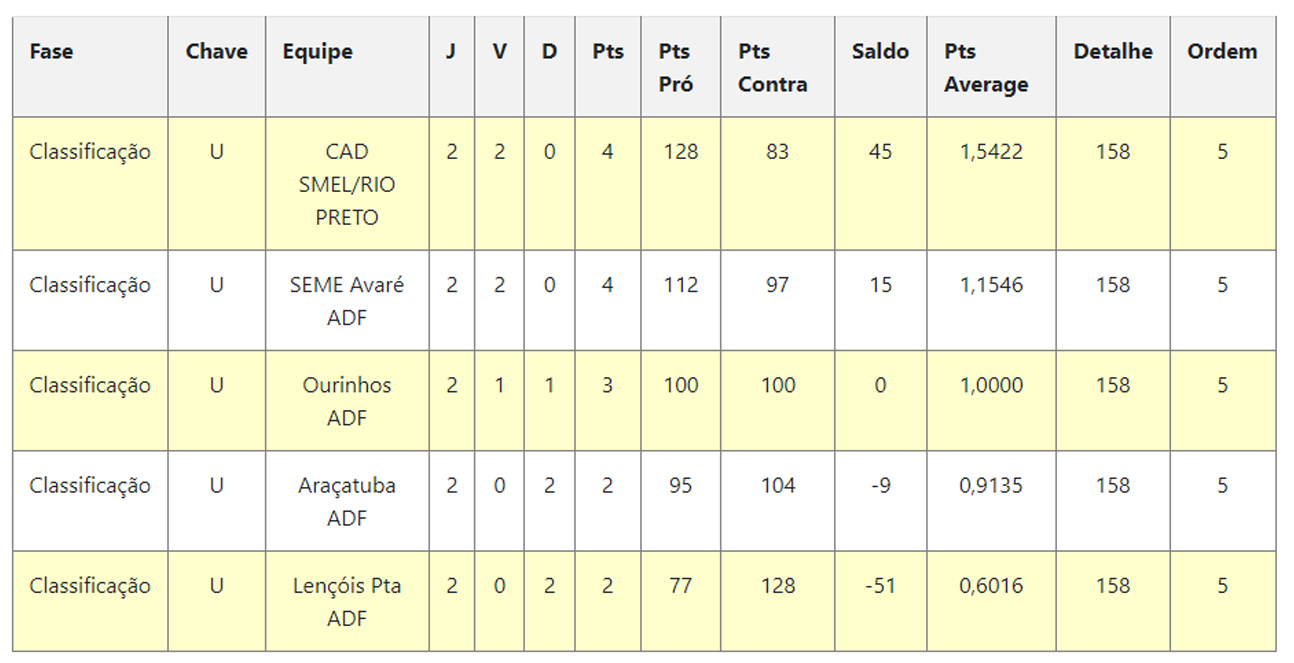 Por enquanto Ourinhos ocupa a terceira colocação, com 3 pontos, com uma vitória e uma derrota. Rio Petro e Avaré lideram com duas vitórias cada. Na lanterna estão Araçatuba e Lençóis Paulista que não venceram até agora na competição.