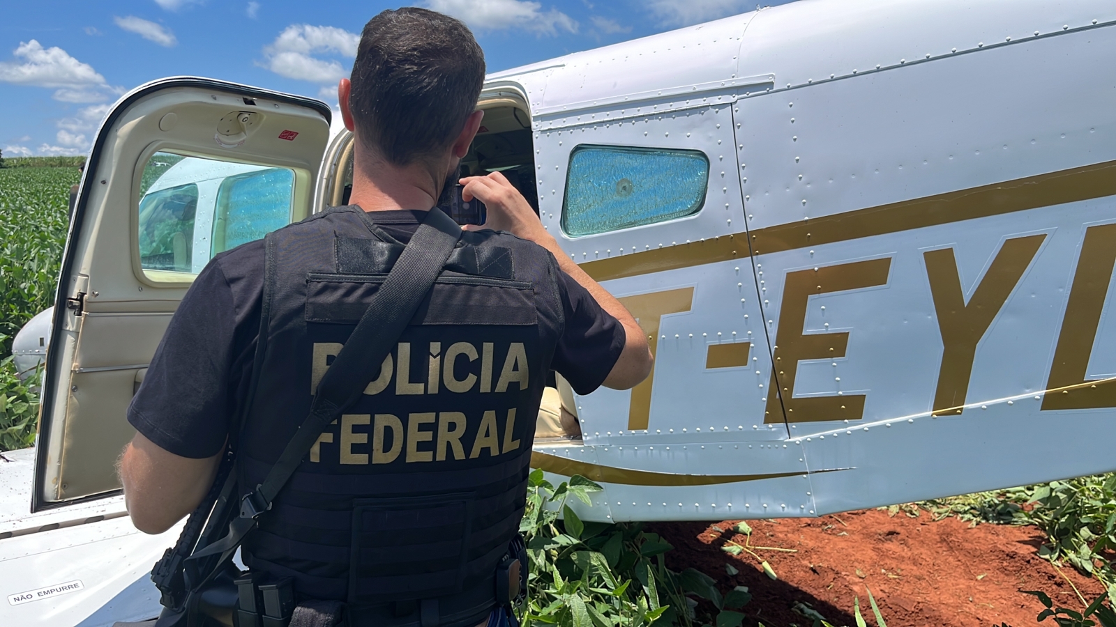 Para escapar do acompanhamento, o piloto fez a manobra em uma plantação de soja onde aconteceu a aterrissagem. Cerca de 500 quilos de cocaína estavam no avião.