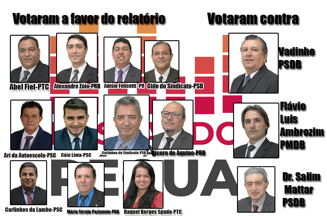 Votaram contra o parecer do relatório, os vereadores Edvaldo Lúcio Abel (Vadinho) – PSDB, Flávio Luis Ambrozim – PMDB e Dr. Salim Mattar- PSDB.