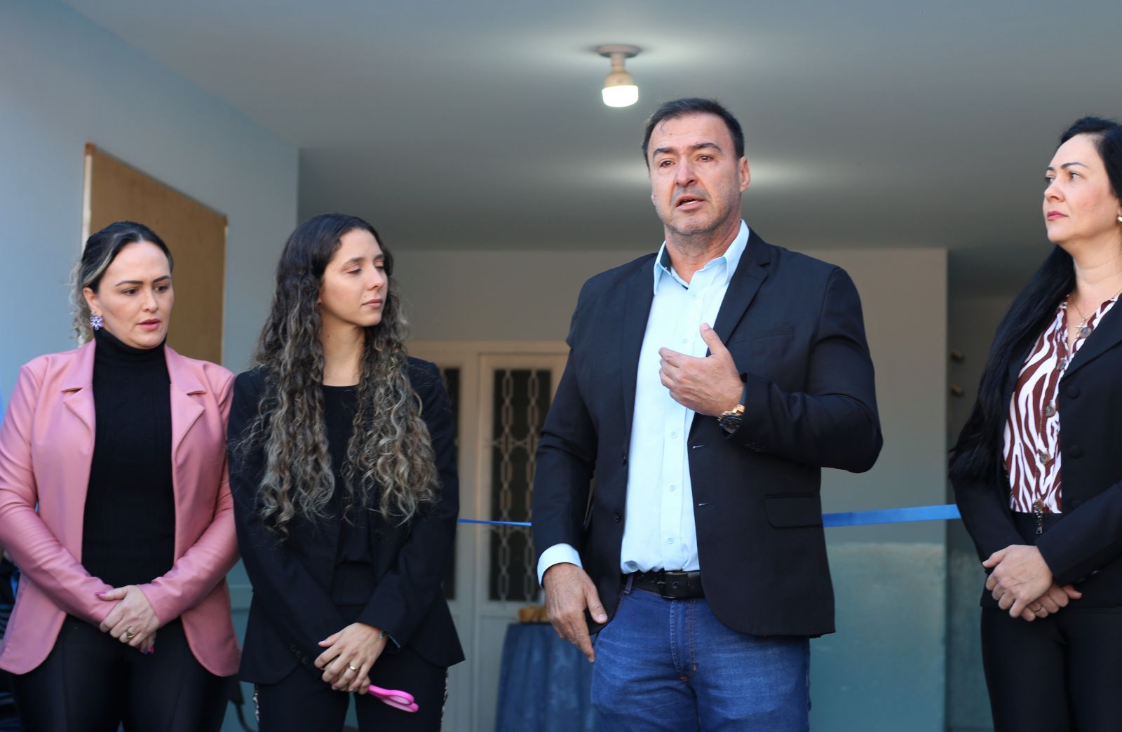 O prefeito Mário Rosa (PL) se emocionou ao lembrar de “Dubinha”. Na esquerda a administradora da Santa Casa de Misericórdia de Salto Grande. Cleide Guerreiro e a diretora de Saúde, Marisabelle Viana, além da primeira-dama, Tarija Pinheiro (Foto: Laperuta)