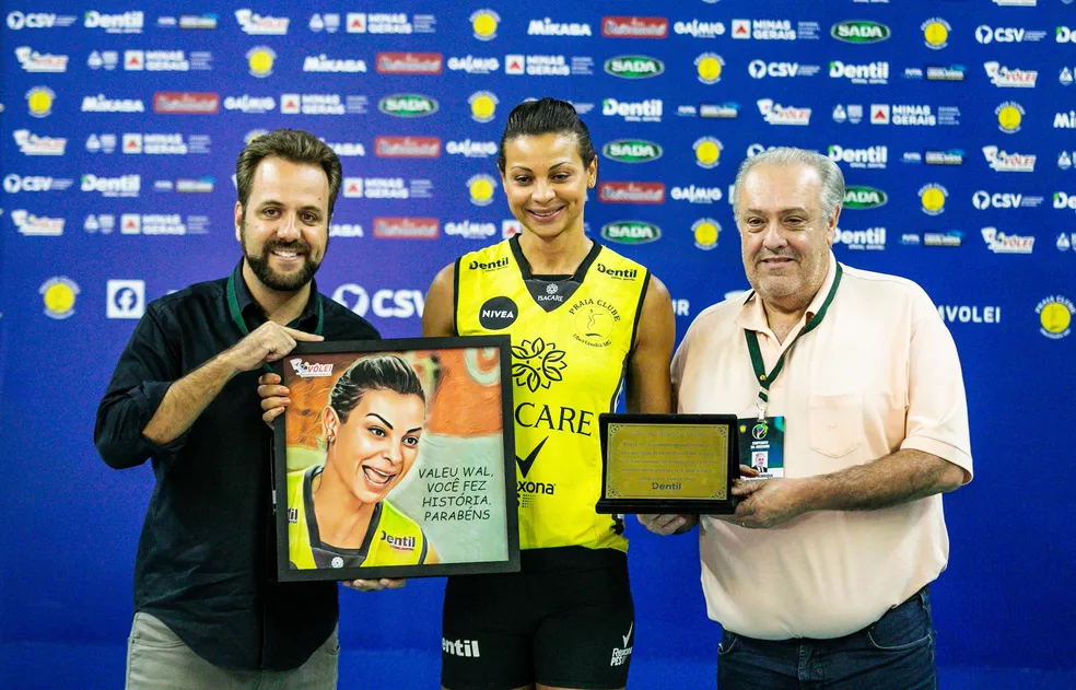 Walewska e suas homenagens após aposentadoria — Foto: Eliezer Esportes/Praia Clube