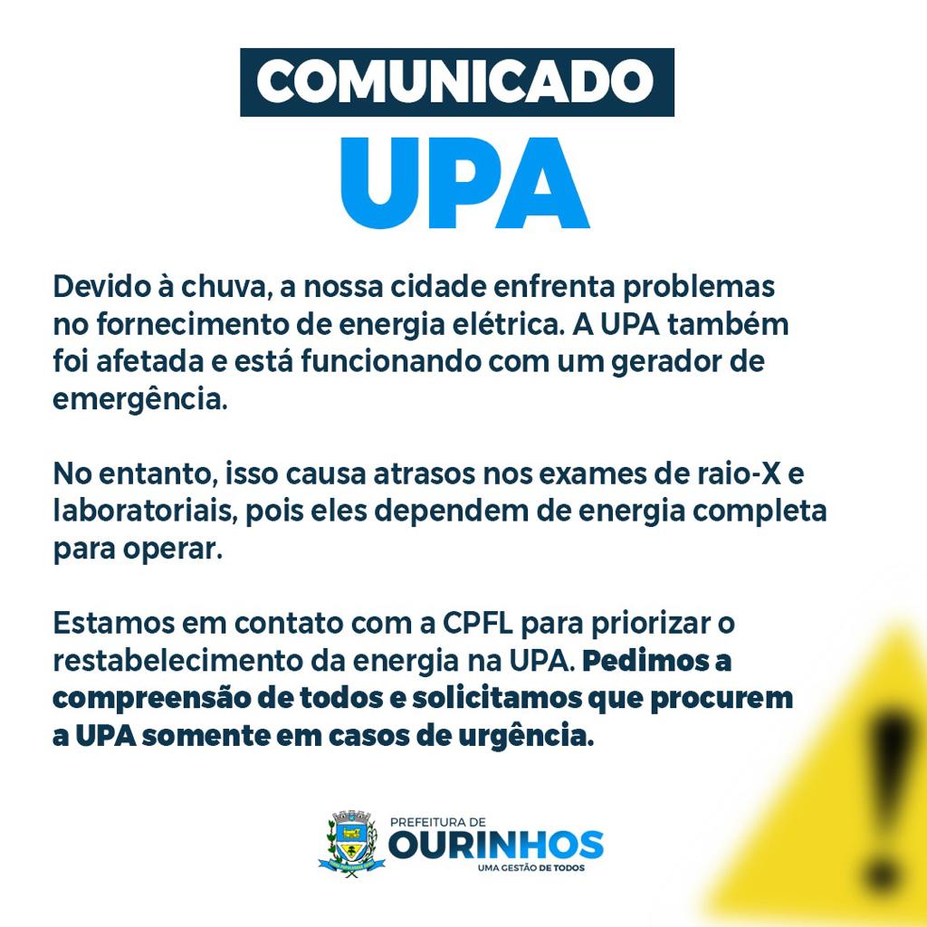 A cidade de Ourinhos foi severamente impactada pelo temporal que ocorreu nesta sexta-feira, 3 de novembro, resultando em sérios estragos em diversas áreas. A Prefeitura de Ourinhos informou que a Unidade de Pronto Atendimento (UPA) 24h também sofreu com a falta de fornecimento de energia elétrica. Apesar de contar com geradores, alguns equipamentos, como o de Raio X, não puderam ser utilizados. A CPFL já está atuando para resolver o problema o mais rápido possível, conforme comunicado emitido às 17h30.