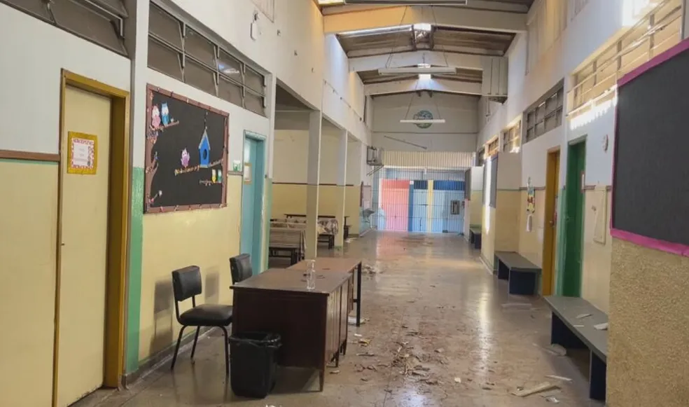 Em uma das unidade, houve destelhamento e aulas foram suspensas em Ourinhos — Foto: Heytor Campezzi / TV TEM