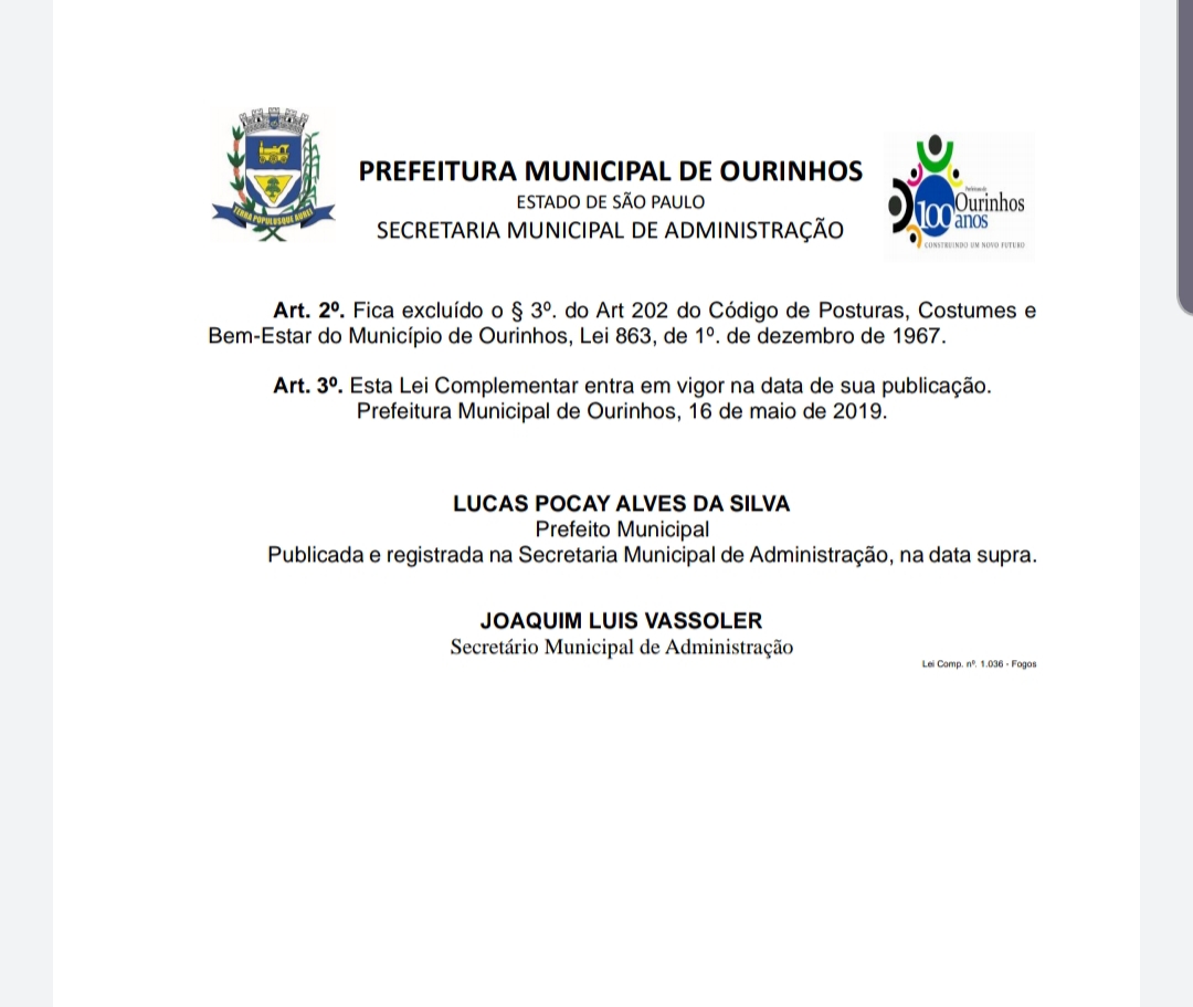 Lei aprovada e sancionada pelo prefeito Lucas Pocay(Foto: reprodução)