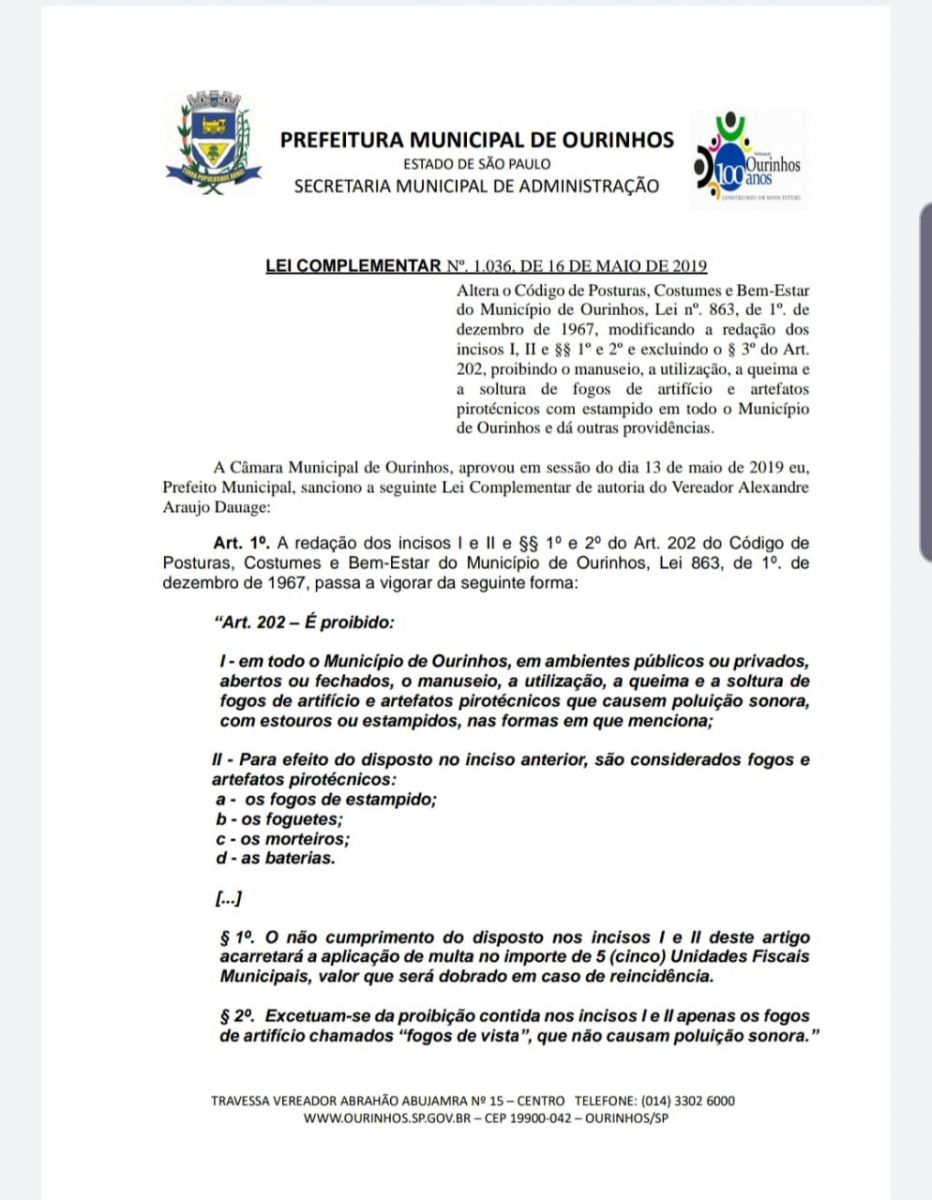 A Lei estabelece uma multa no importe de 5 (cinco) Unidades Fiscais Municipais, valor que será dobrado em caso de reincidência. Confira abaixo o conteúdo da lei que foi sancionada pelo prefeito Lucas Pocay, em maio deste ano.