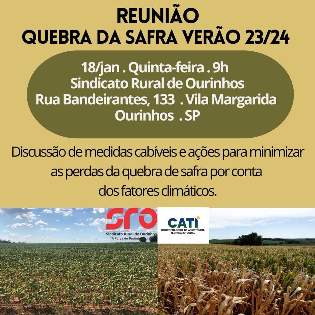 A sede do Sindicato Rural de Ourinhos estará aberta para receber os produtores interessados em contribuir e buscar alternativas para minimizar os efeitos da Quebra da Safra Verão 2023/2024.