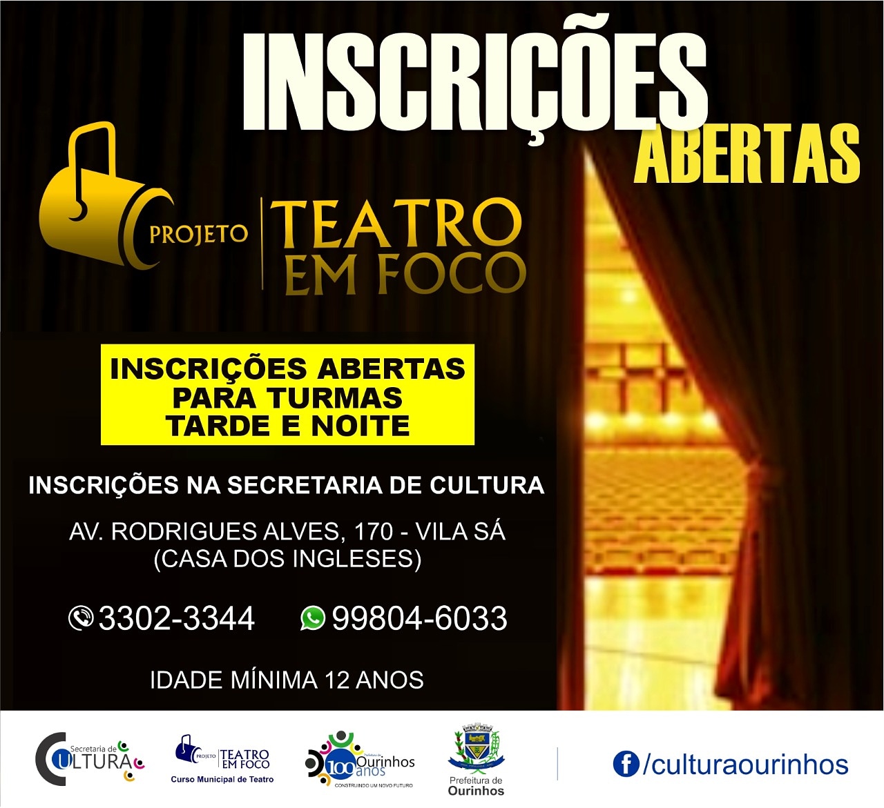 A Secretaria de Cultura divulgou a abertura das inscrições para o Curso Municipal de Teatro.