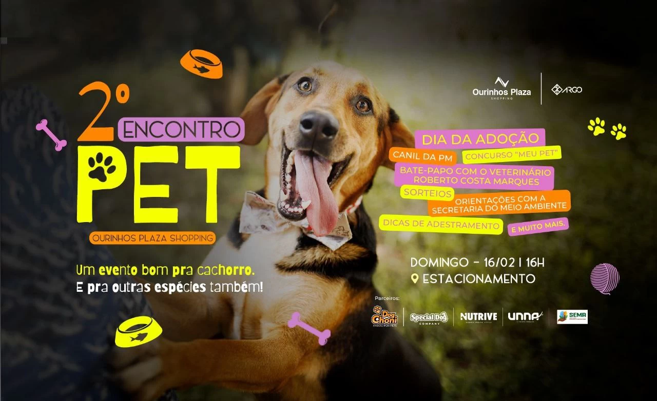 O Ourinhos Plaza Shopping realizará, no dia 16 de fevereiro, às 16h00, o 2° Encontro Pet, no estacionamento do shopping, prometendo um evento repleto de atrações para toda a família e, claro, para os pets!
