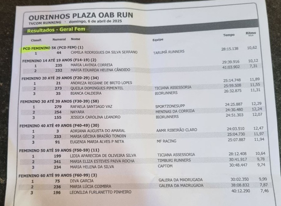 - Geral 5K Feminino (G5KM-FEM) – 5 premiadas