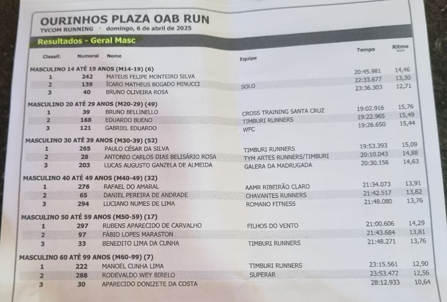 Com excelente organização e grande participação do público, a prova contou com equipes conhecidas no cenário regional, como Correr Bem Ourinhos, Timburi Runners, HAF Ourinhos, entre outras.