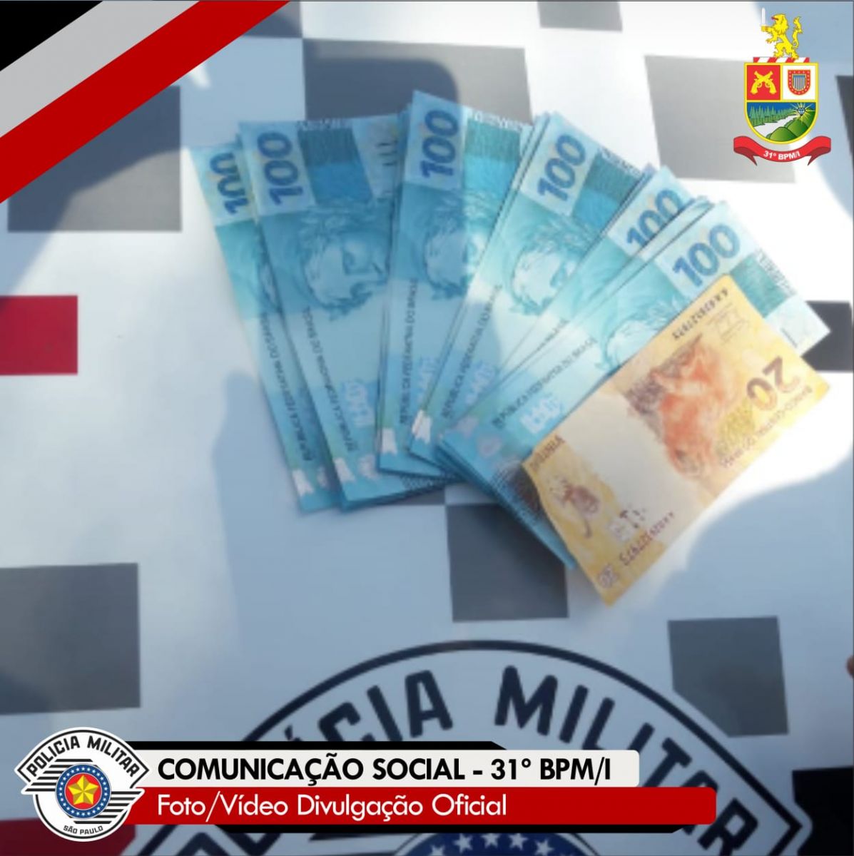 “Chegou ao conhecimento dos policiais militares que uma pessoa estaria distribuindo notas falsas pelo comércio de Santa Cruz do Rio Pardo. Em patrulhamento pelo bairro jardim ype, localizamos o suspeito e, durante a busca pessoal, foram localizados dois mil cento e quarenta e cinco reais. conduzido ao plantão da Policia Federal em Marília para as providências cabíveis”