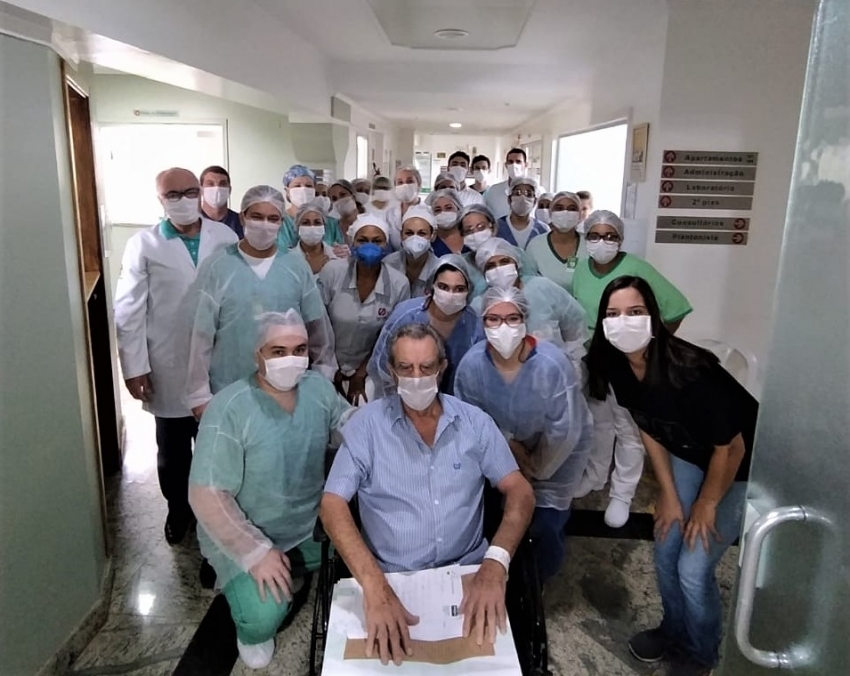 I.G. de 76 anos de idade saiu sob aplausos da equipe médica, enfermeiros e dos colaboradores nos corredores do hospital, levado em cadeira de rodas e visivelmente emocionado com a recuperação.