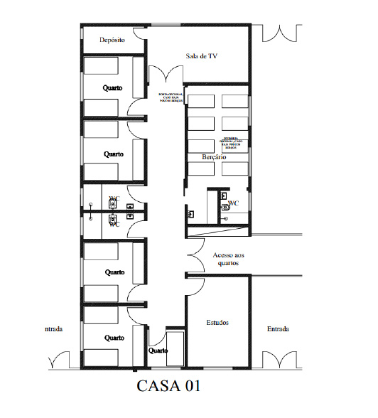 Planta apresentada: Serão duas casas dentro do novo local. Uma casa para atender 20 pessoas e outra para 10 pessoas.