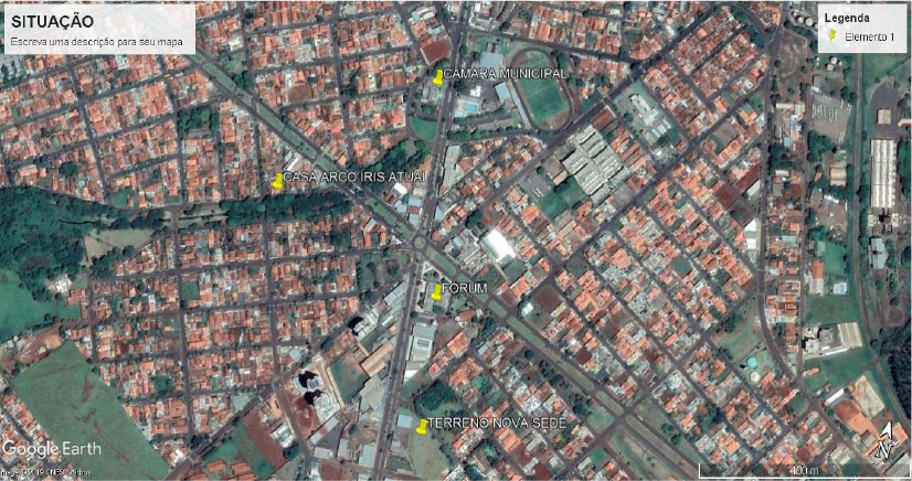 Localização do terreno da nova Casa "Arco Íris", que deverá ter capacidade para atender 30 crianças. Visão do mapa do Google: Rua João Madeira, Vila São Silvestre, atrás do velatório Irmãos Castelletto.
