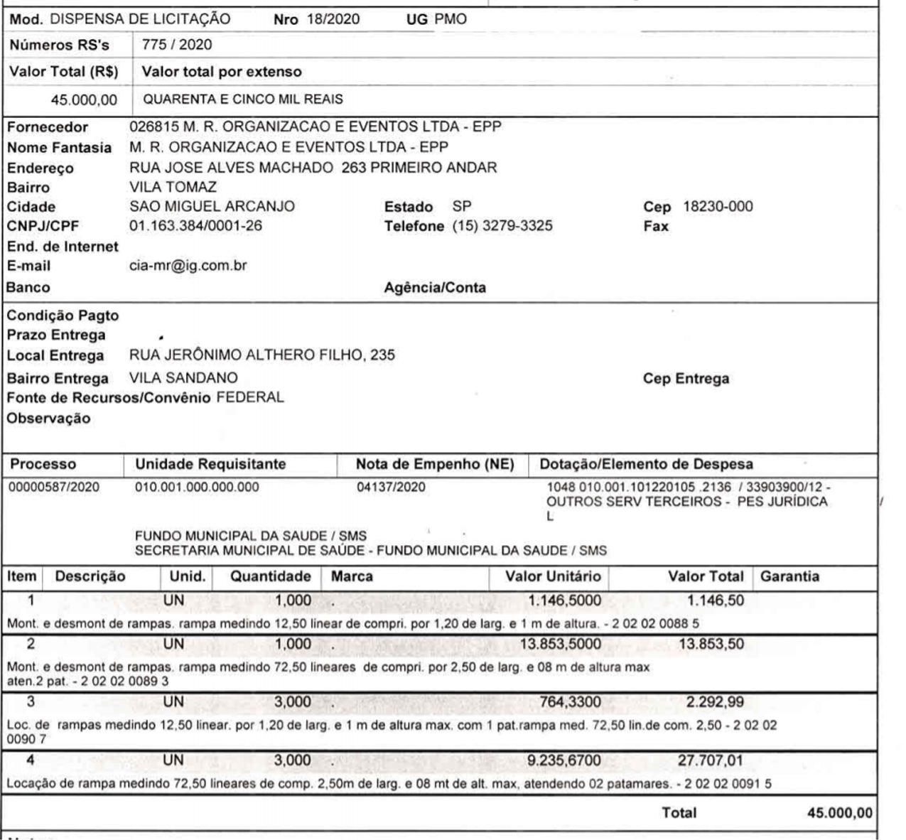 O serviço foi feito por empresa que organiza eventos de São Miguel Arcanjo (SP). Confira abaixo o contrato (clique e consulte direto no site):