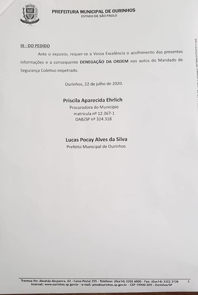 Confira abaixo a petição protocolada pelo Prefeito Lucas na Justiça contra o Sindicato:
