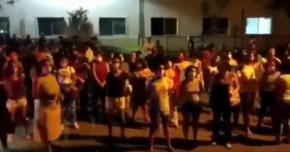 Grupo de mulheres se posiciona em frente ao hospital em que garota de 10 anos estava internada para impedir que religiosos invadam o local (Foto: Reprodução redes sociais / Estadão)
