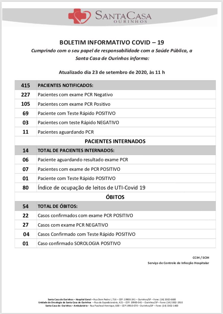 A Santa Casa de Misericórdia de Ourinhos divulgou na tarde desta quarta-feira, 23, o registro de mais um óbito por Covid-19. Trata-se de um paciente da cidade de Chavantes (18 km de Ourinhos).