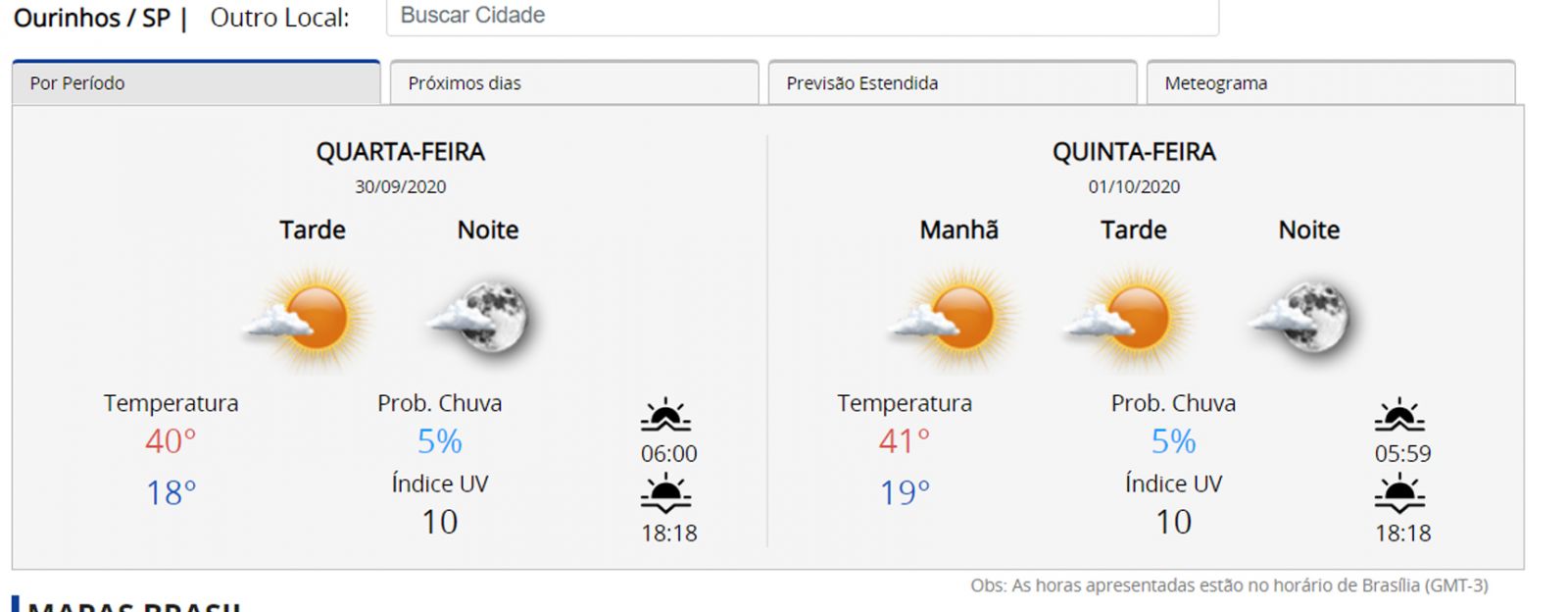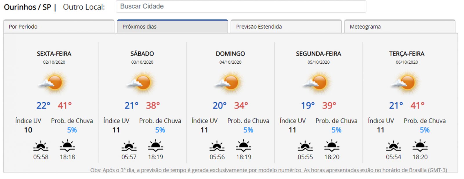 Confira as próximas temperaturas segundo o Centro de Previsão de Tempo e Estudos Climáticos do INSTITUTO NACIONAL DE PESQUISAS ESPACIAIS.