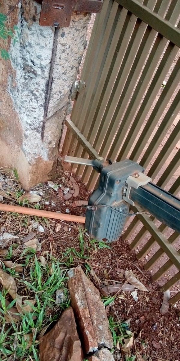 Bandidos arrebentaram o portão da casa (Foto: Arquivo Pessoal)