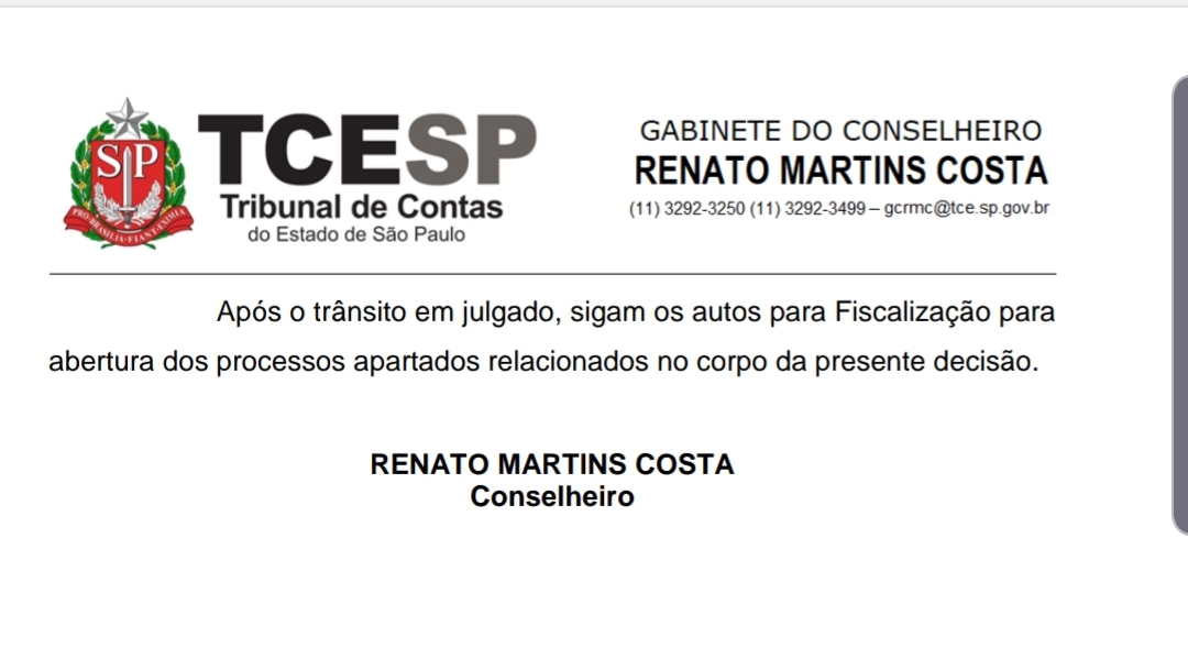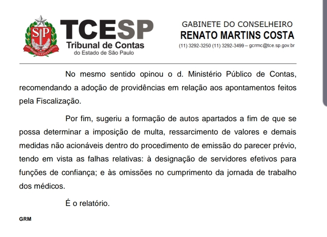 O TC-SP optou pela aprovação das constas, porém informou que abrirá processos apartados a fim de que se possa determinar a imposição de multa, ressarcimento de valores e demais medidas não acionáveis dentro do procedimento de emissão do parecer prévio, tendo em vista as falhas relativas: à designação de servidores efetivos para funções de confiança; e às omissões no cumprimento da jornada de trabalho dos médicos. Com isso o prefeito Lucas Pocay e o seu vice podem ser alvos de ação por improbidade administrativa.