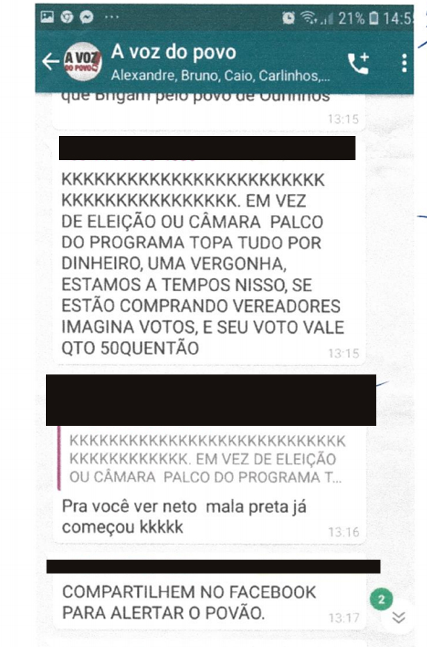 Na época o vereador estava no PRB e ainda não tinha se transferido para o PP, partido pelo qual concorre à reeleição. Confira os abaixo “prints” das mensagens espalhadas na época: