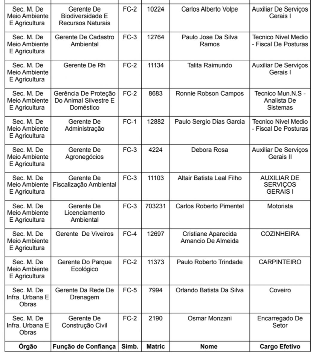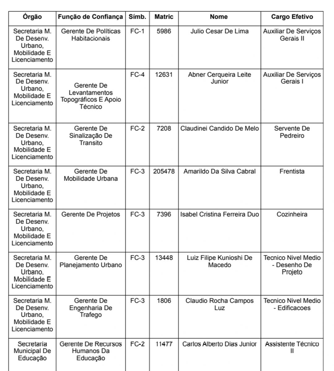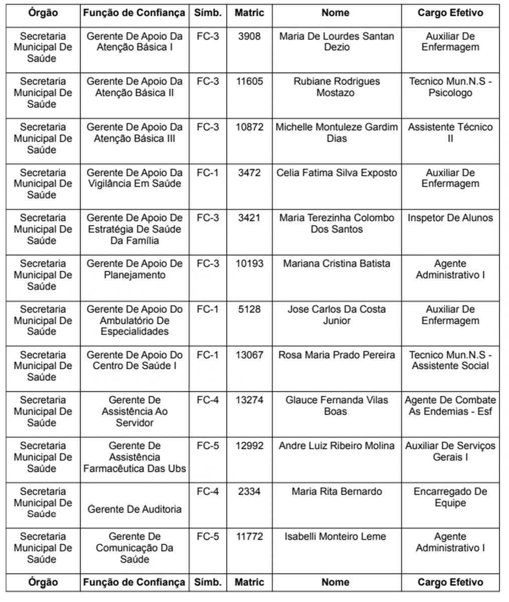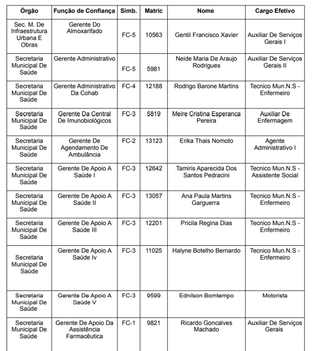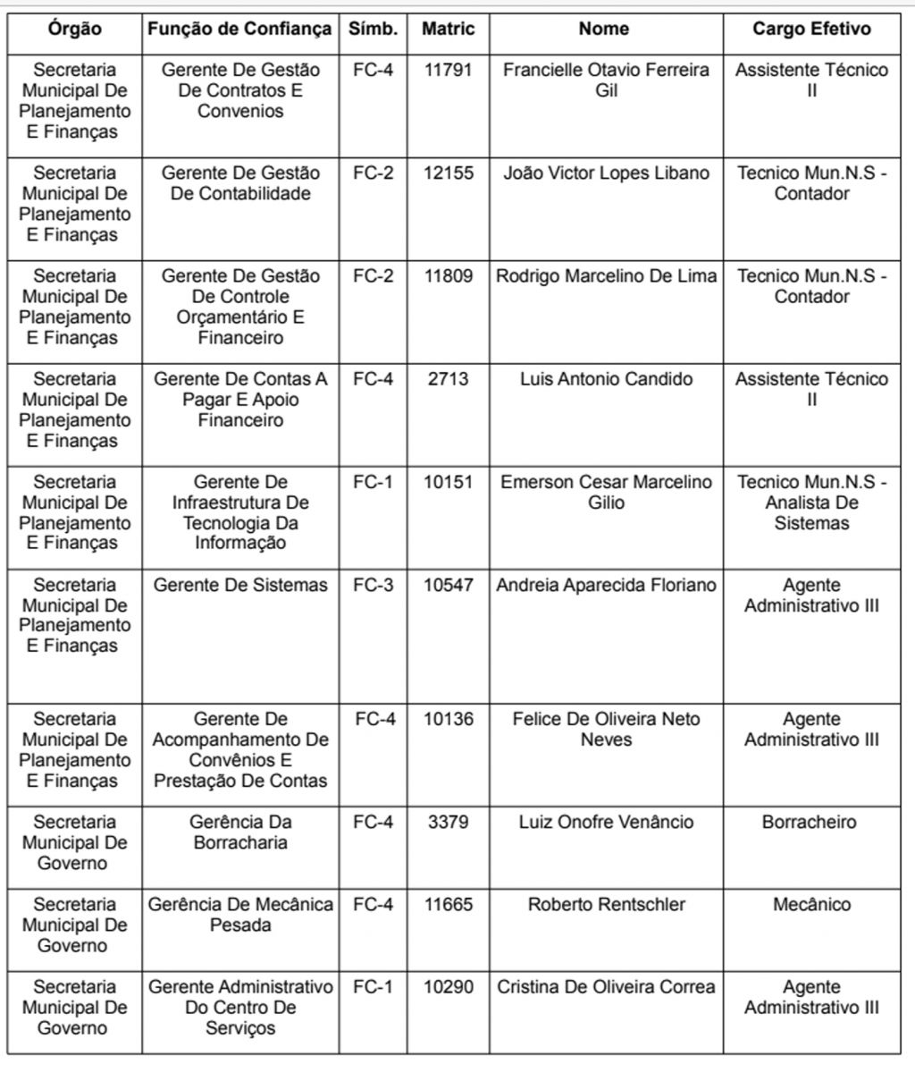 Tabelas mostram as alterações dos cargos de confiança durante a atual gestão (Foto: Reprodução)
