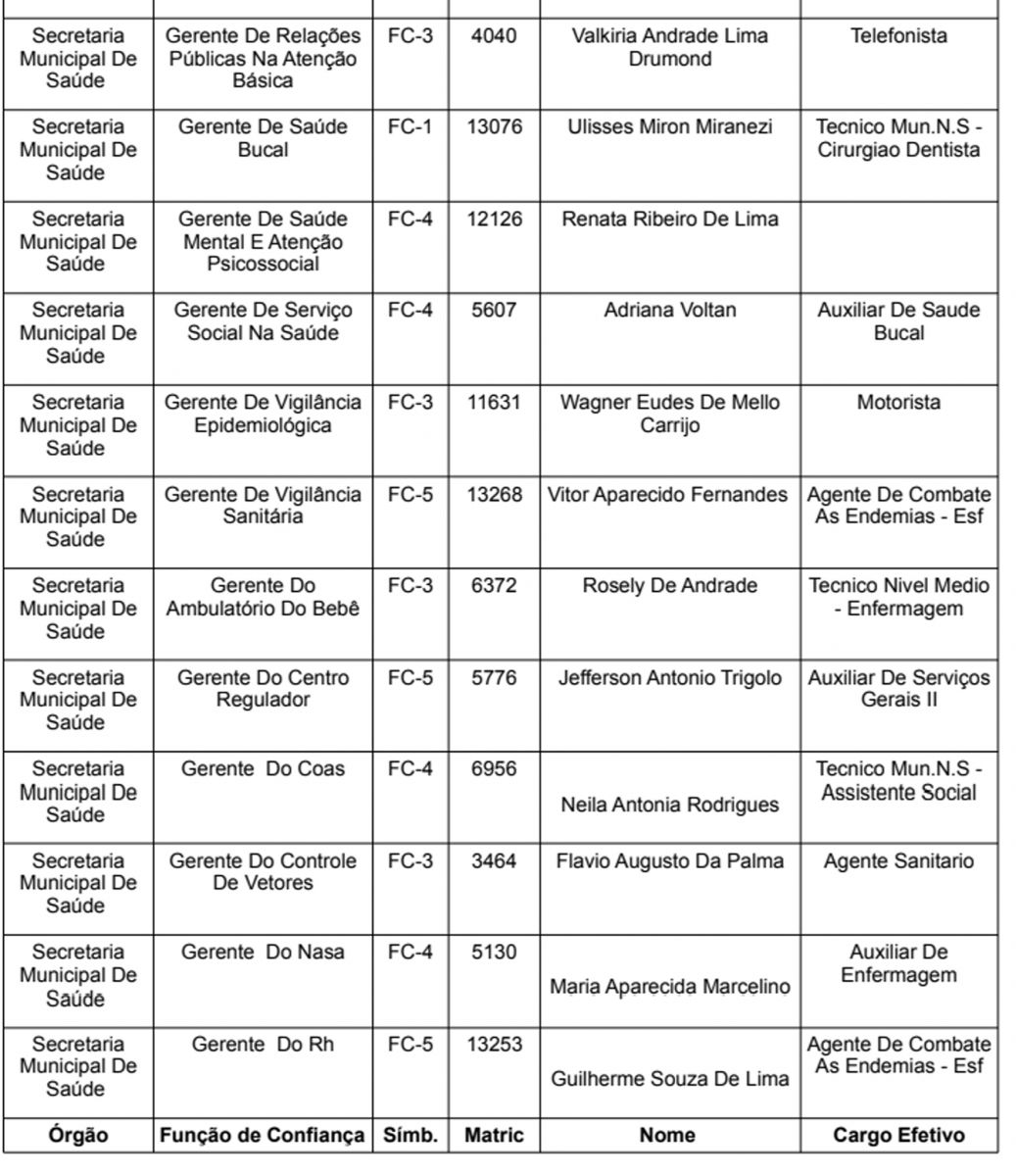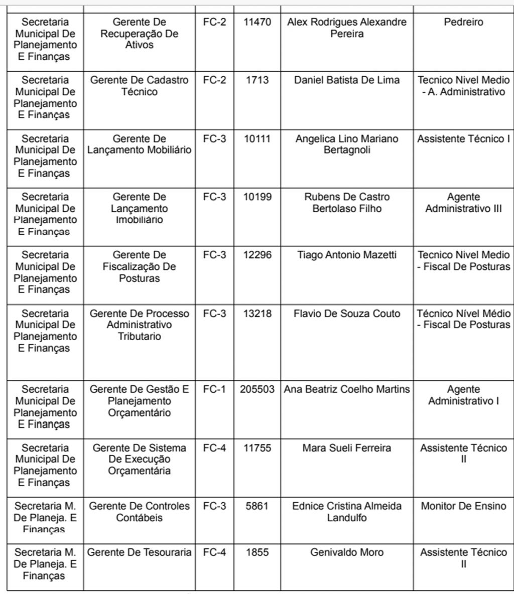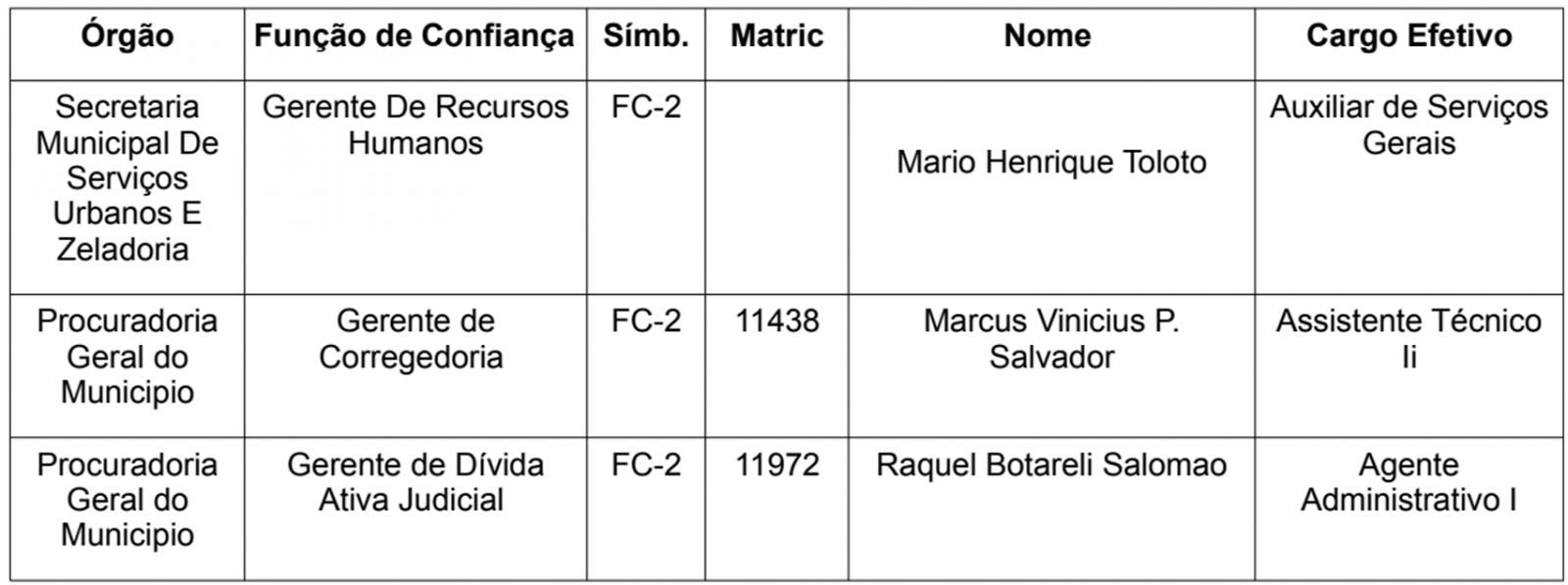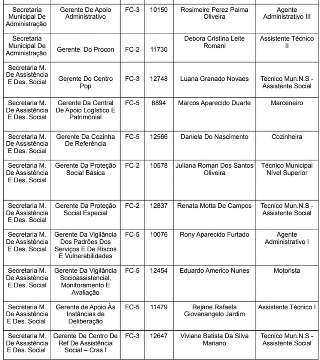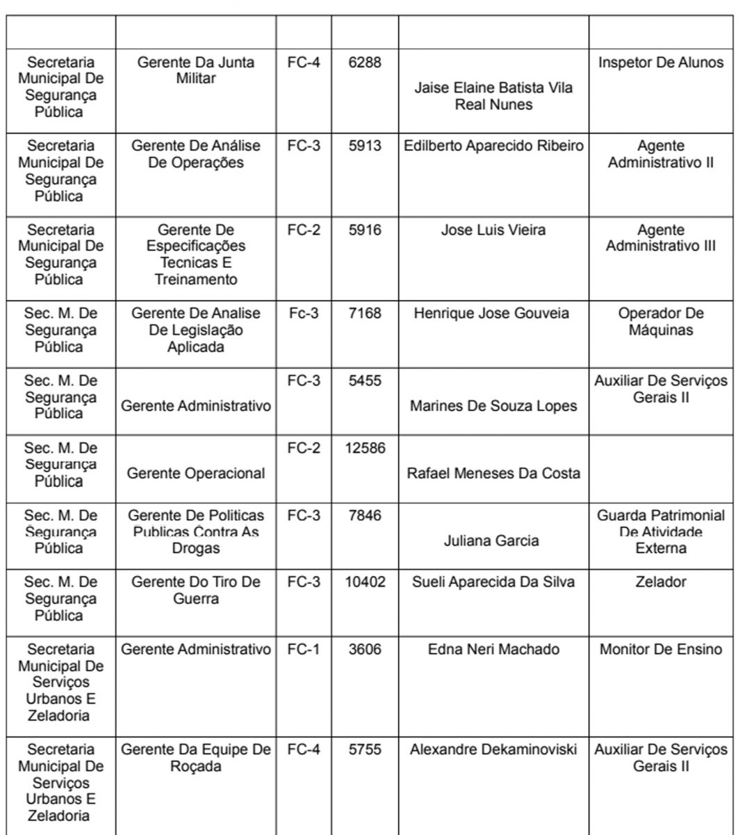 Tabelas mostram as alterações dos cargos de confiança durante a atual gestão (Foto: Reprodução)