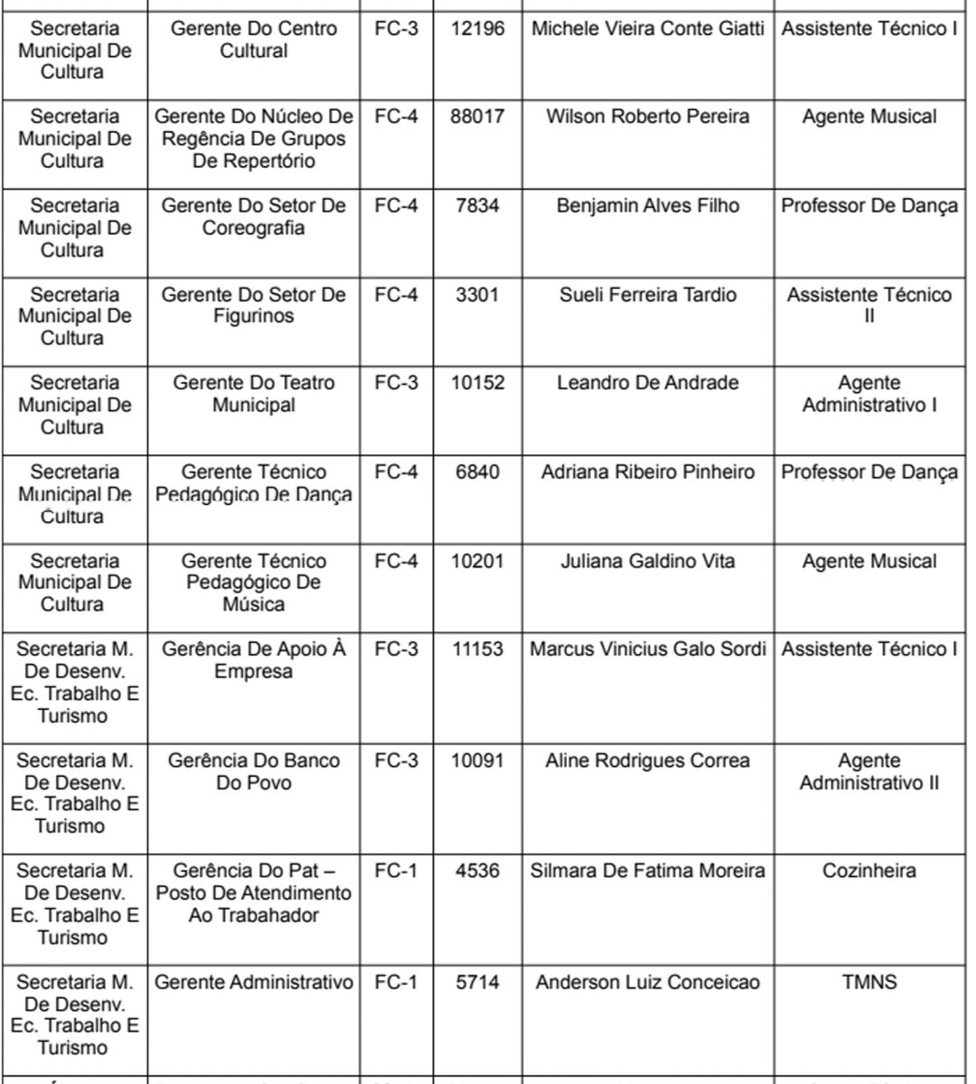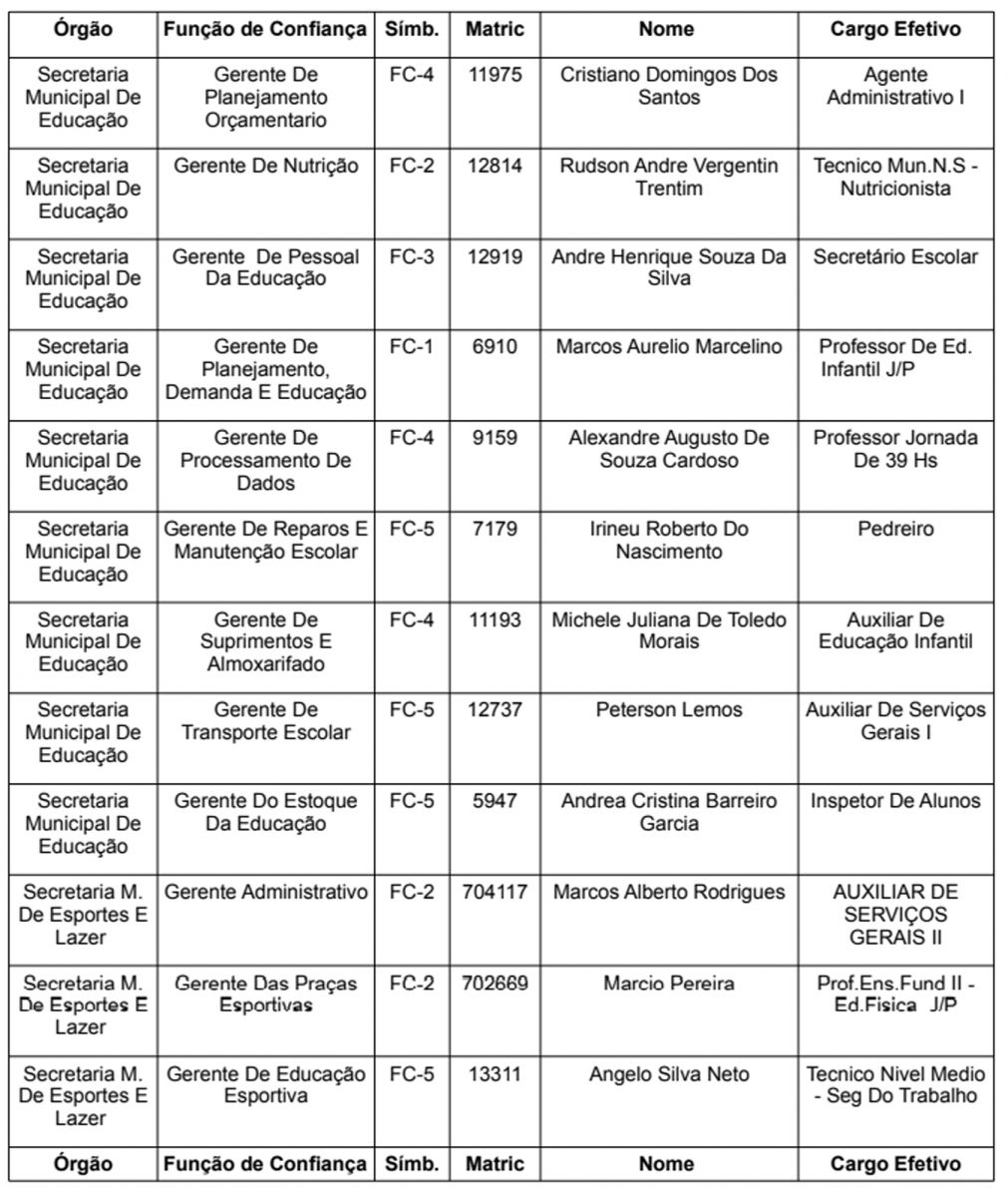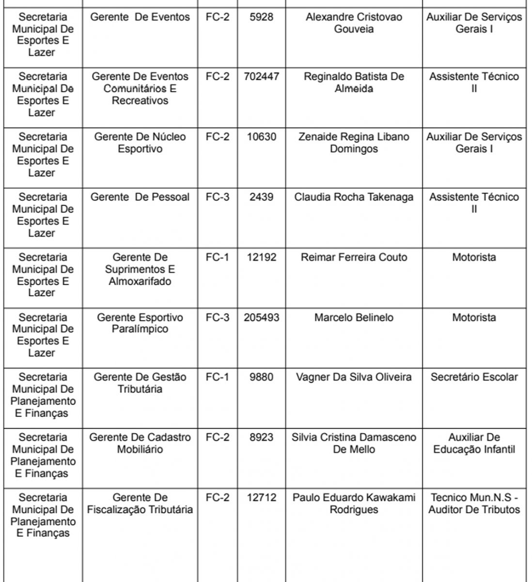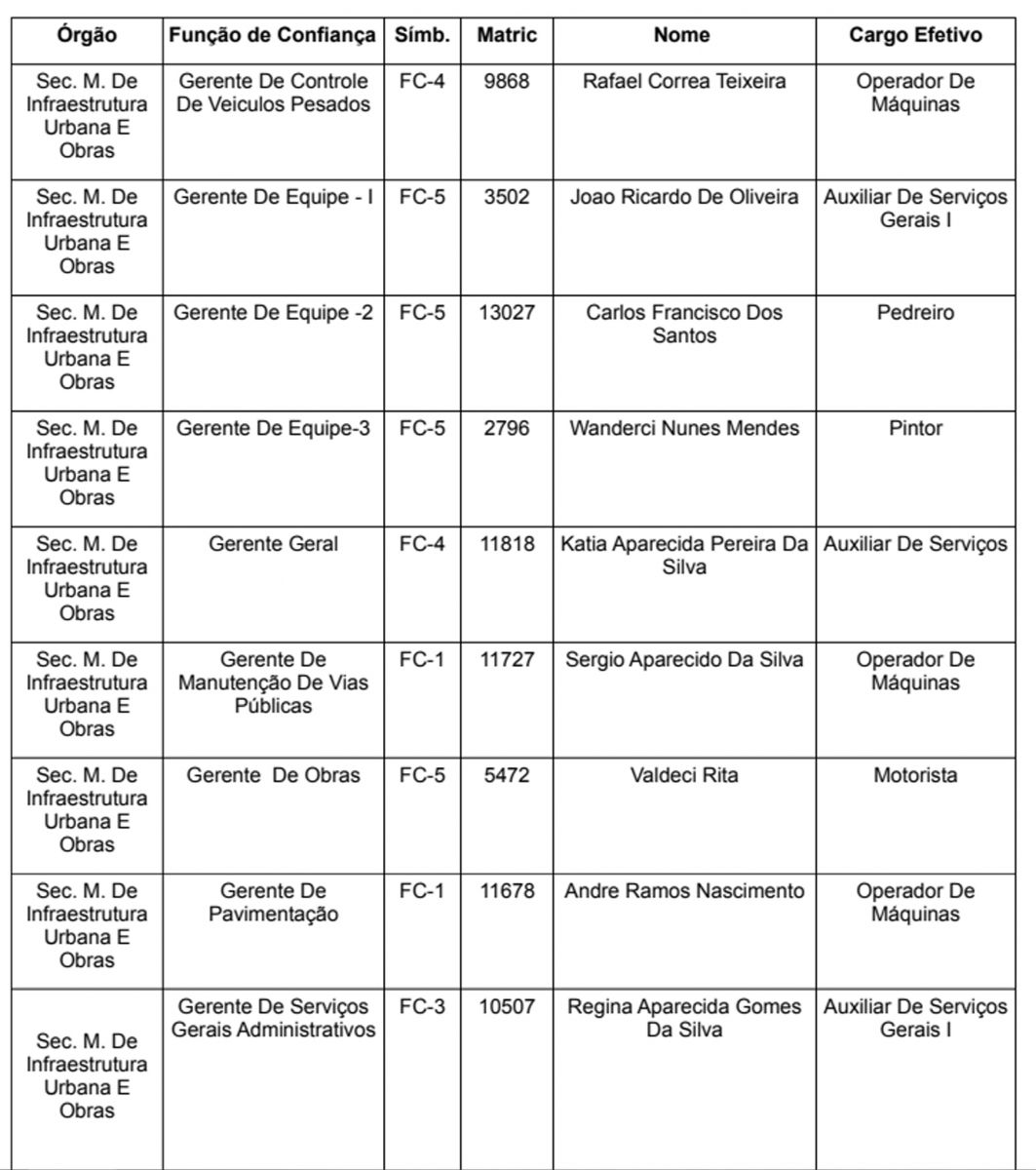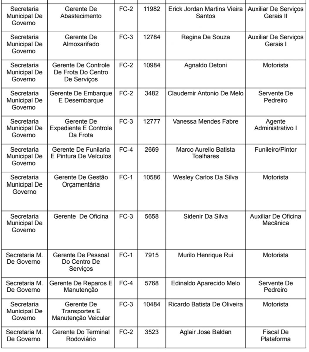 Tabelas mostram as alterações dos cargos de confiança durante a atual gestão (Foto: Reprodução)
