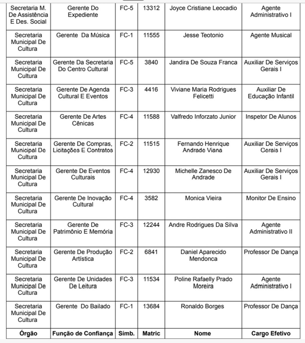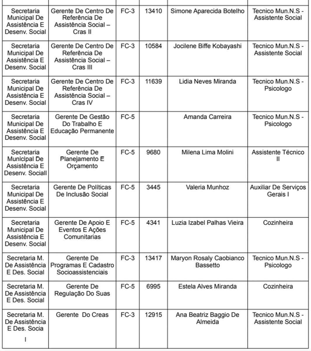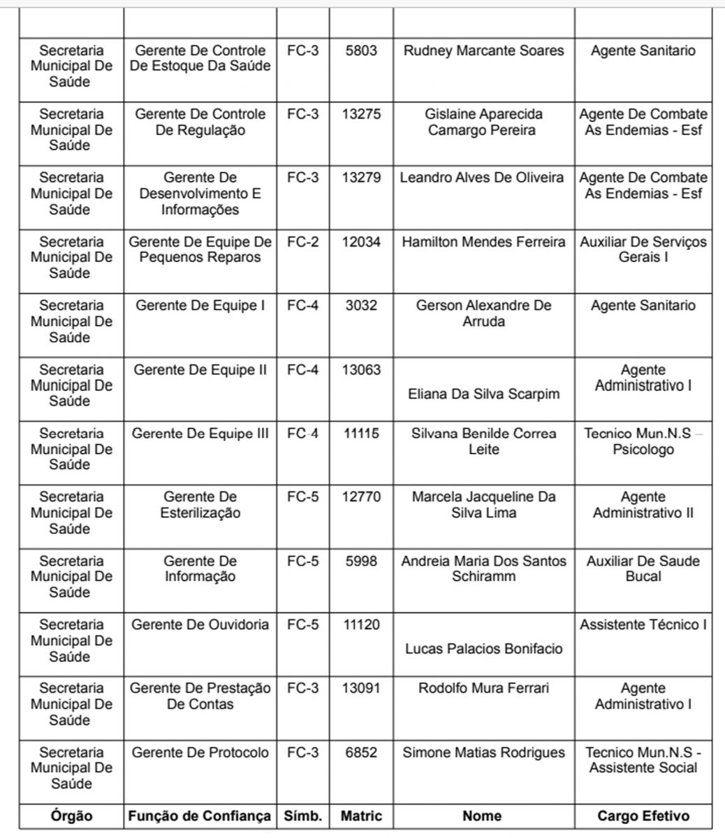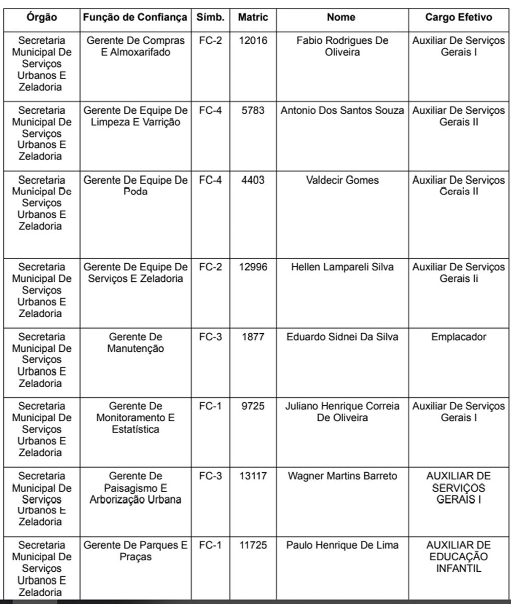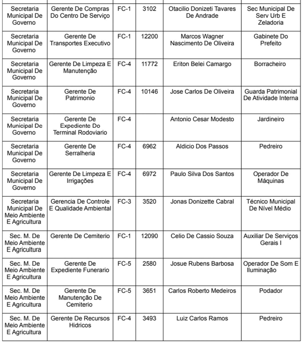 Tabelas mostram as alterações dos cargos de confiança durante a atual gestão (Foto: Reprodução)
