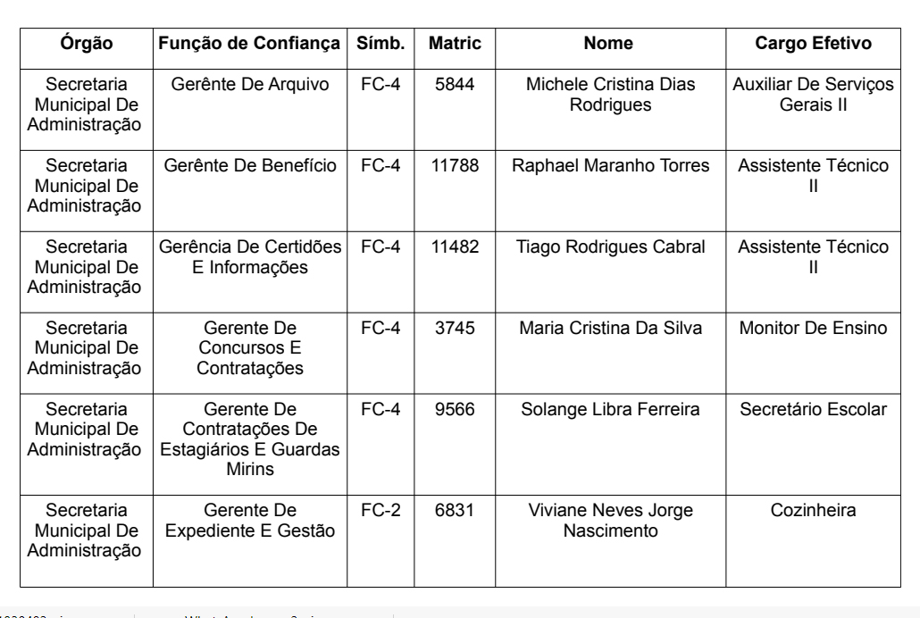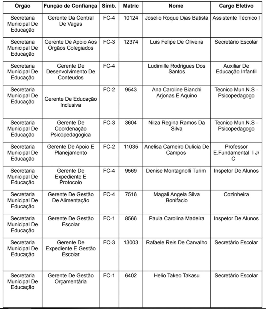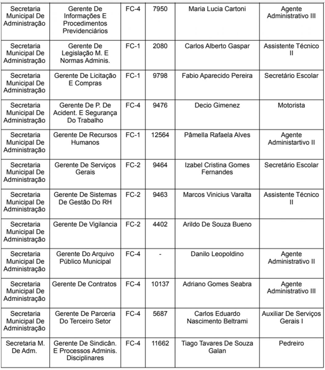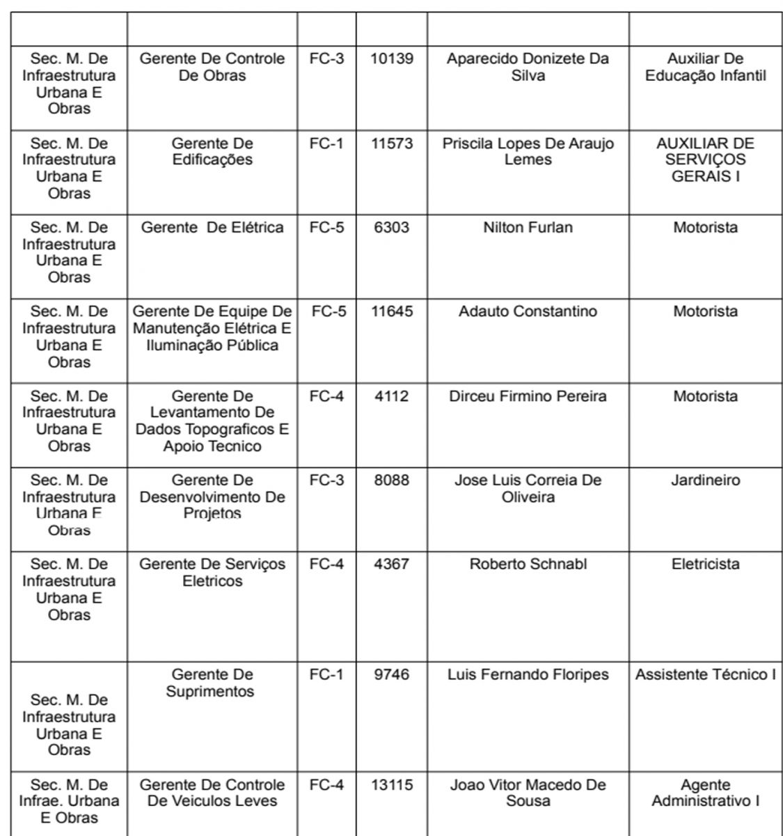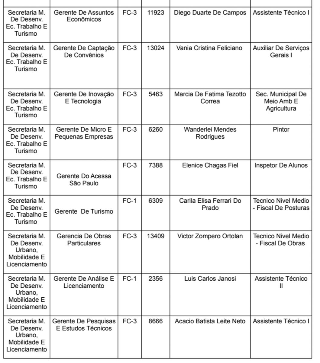 Tabelas mostram as alterações dos cargos de confiança durante a atual gestão (Foto: Reprodução)