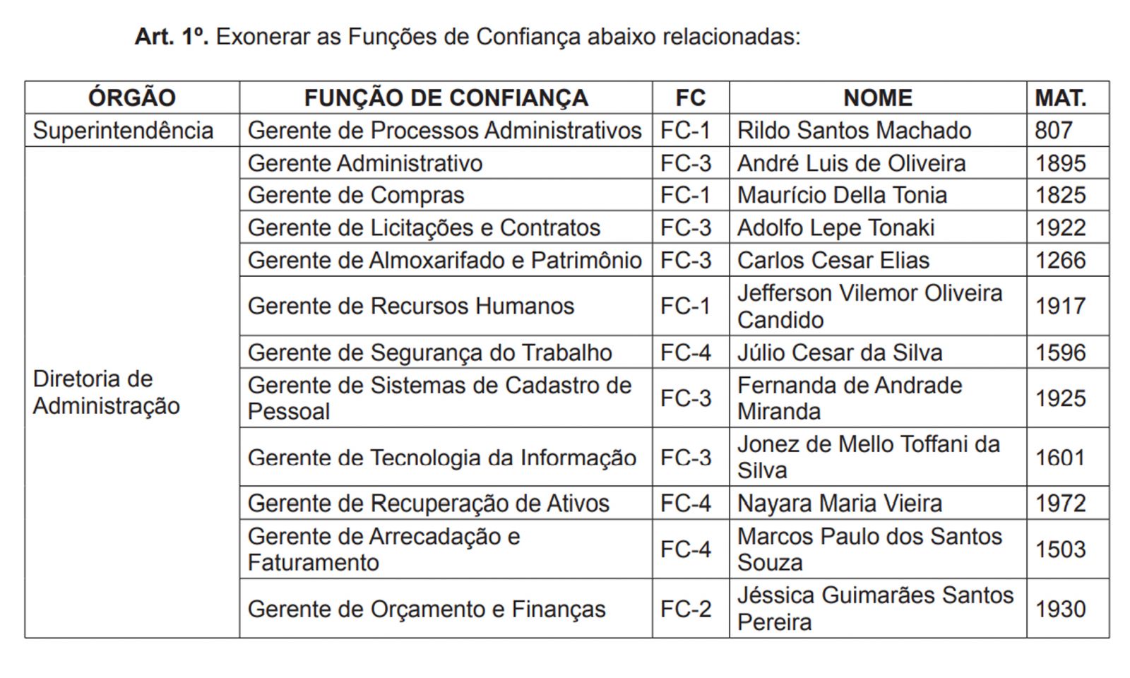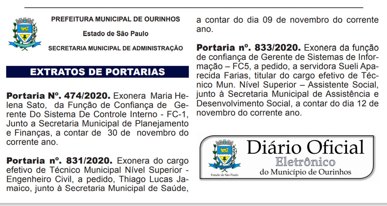 Quase 300 servidores efetivos da Prefeitura de Ourinhos, SAE (Superintendência de Água e Esgoto de Ourinhos) e IPMO (Instituto de Previdência do Município de Ourinhos), que gozavam de uma FC (Função de Confiança), foram exonerados dos seus respectivos cargos de confiança nesta terça-feira, 1º. As portarias com as exonerações foram publicadas no Diário Oficial do Município de Ourinhos. Não foram exonerados cargos comissionados que não são servidores efetivos.