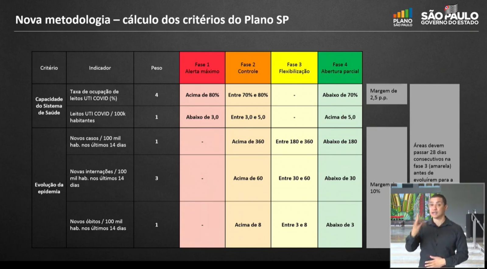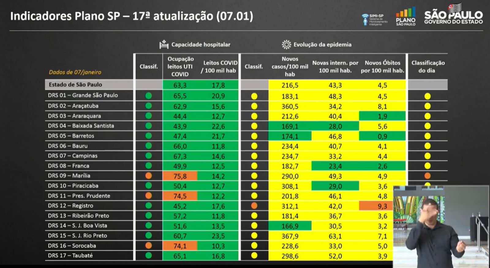 O Governo de São Paulo anunciou na tarde desta sexta-feira, 8, a reclassificação do Plano SP e a região que Ourinhos pertence, do DRS (Departamento Regional de Saúde de Marília), retroagiu à fase Laranja, que é considerada a fase de “controle” e com isso algumas atividades poderão ser restritas, como a diminuição de horários de atendimento como bares, restaurantes, salões de beleza, academias, teatros, cinemas, serviços de educação e espaços públicos, mas para que estas restrições ocorram, o prefeito Lucas Pocay (PSD) terá que publicar um novo decreto estabelecendo as medidas de controle da Covid-19 na cidade. O prefeito ainda não se manifestou sobre os novos dados. Continua valendo o último decreto municipal em Ourinhos (clique aqui).