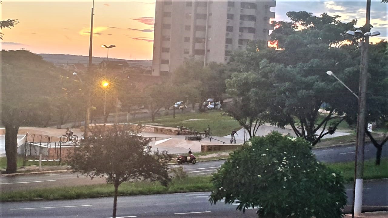 Praça dos Sktistas na noite desta sexta-feira, 15, sendo frequentada normalmente (Foto: Passando a Régua)