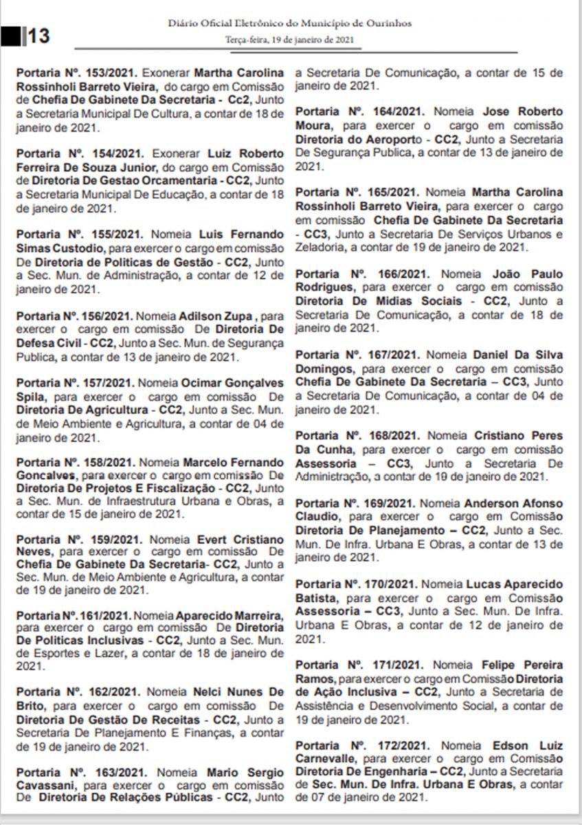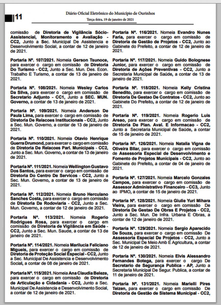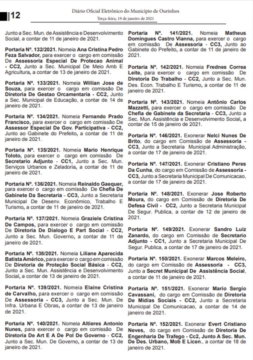 Confira abaixo a relação de portarias publicadas (4 páginas). Na primeira página ainda constam algumas exonerações, mas na sequências todos os nomeados.