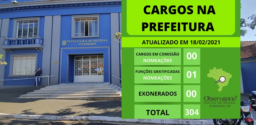 Nesta primeira divulgação, o Observatório Socia levou em consideração apenas os cargos que foram nomeados neste inicio de ano na Prefeitura de Ourinhos, não contabilizando os cargos que eventualmente já estavam nomeados e permaneceram.