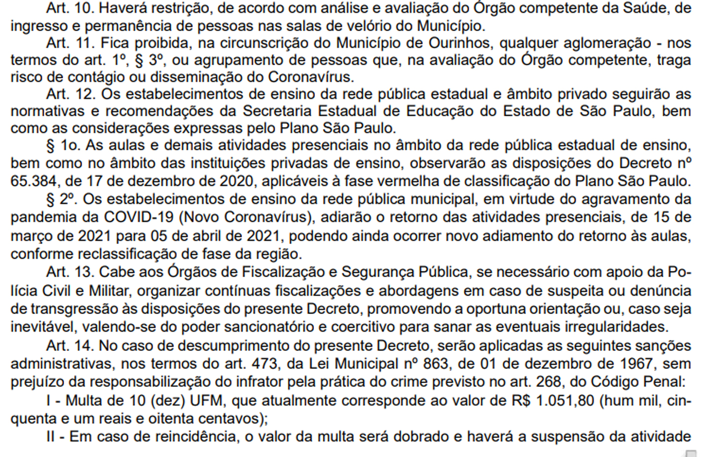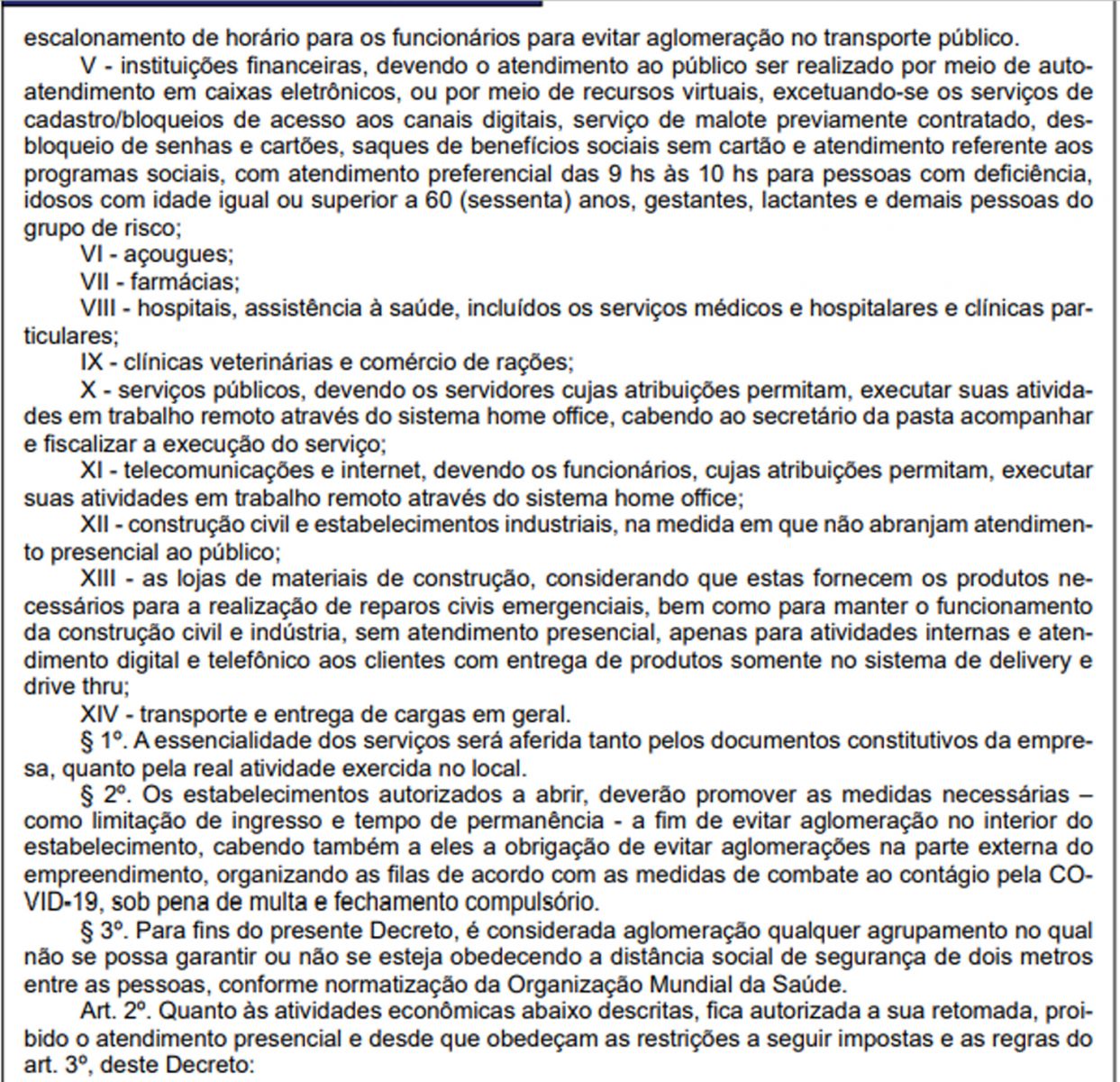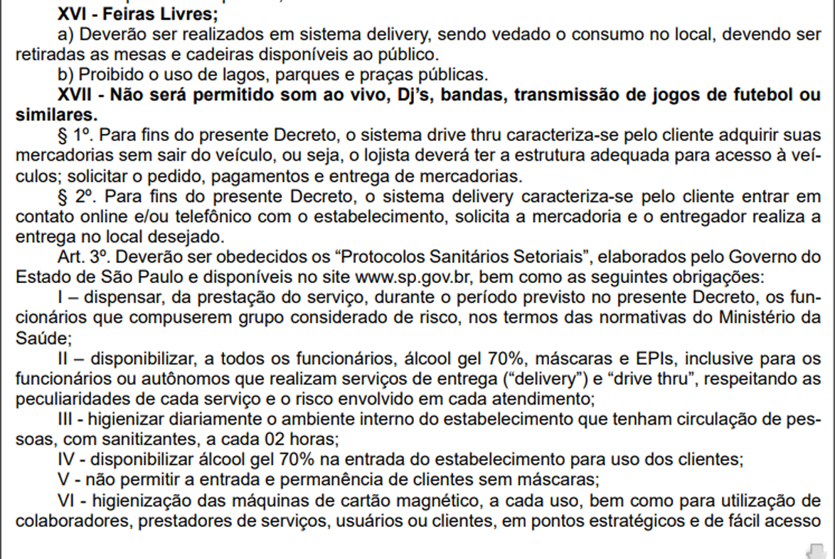 Demorou, mas o prefeito de Ourinhos Lucas Pocay (PSD), publicou na noite desta sexta-feira, 12, no Diário Oficial do Município, o Decreto nº 7.382, que estabelece medidas de contingenciamento, de caráter temporário, em continuação à prevenção de contágio pela Covid-19. O novo decreto endurece ainda mais a quarentena na cidade, afim que reduzir o contágio do vírus, que já matou até a última divulgação 122 pessoas na cidade. Entre as principais alterações é a retirada do sistema “Take Away”, que permitia o cliente buscar a mercadoria na porta do estabelecimento a pé. Agora só estão permitidos os sistemas delivery e drive-thru em serviços considerados não essenciais. Os horários de funcionamento dos estabelcimentos foram mantidos.