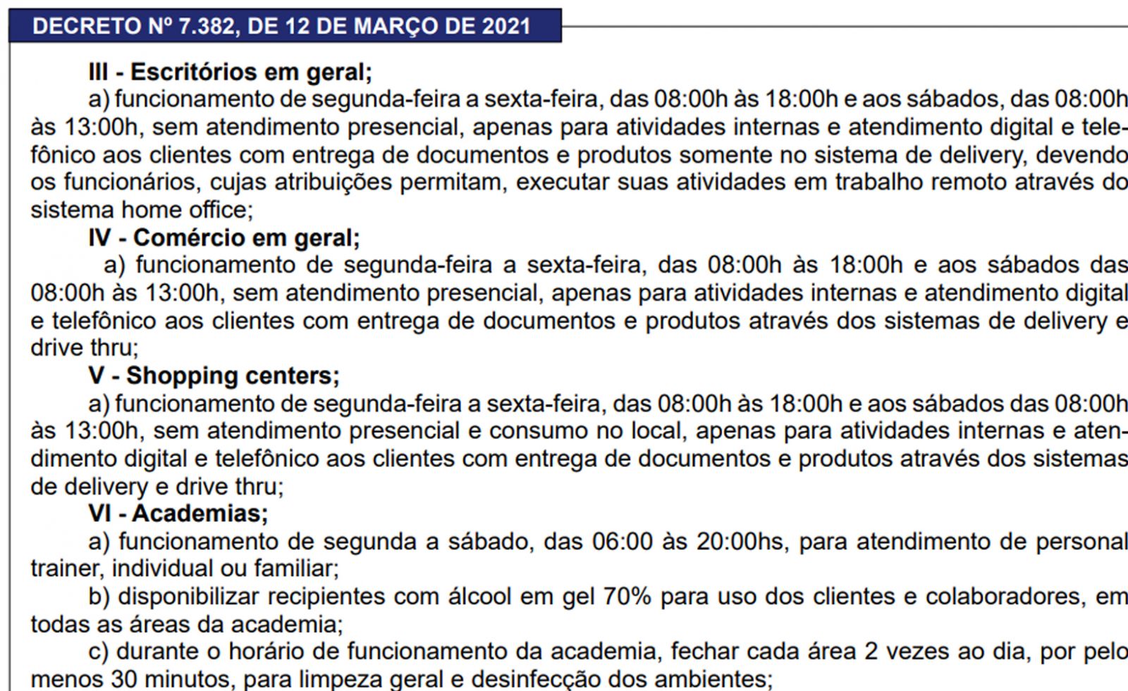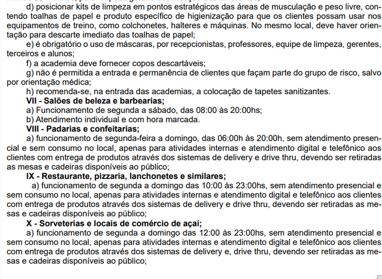 Já academias e salões de beleza não sofreram mudanças com relação ao último decreto, mantendo atendimento presencial.