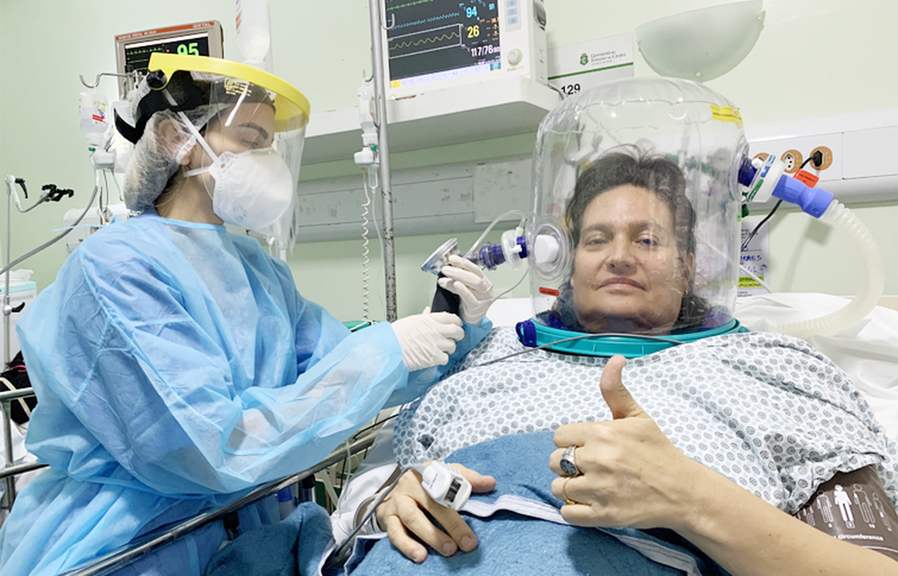 Metade dos pacientes que utilizaram o capacete Elmo no Hospital São José, no Ceará, já receberam alta médica. — Foto: Divulgação/Sesa