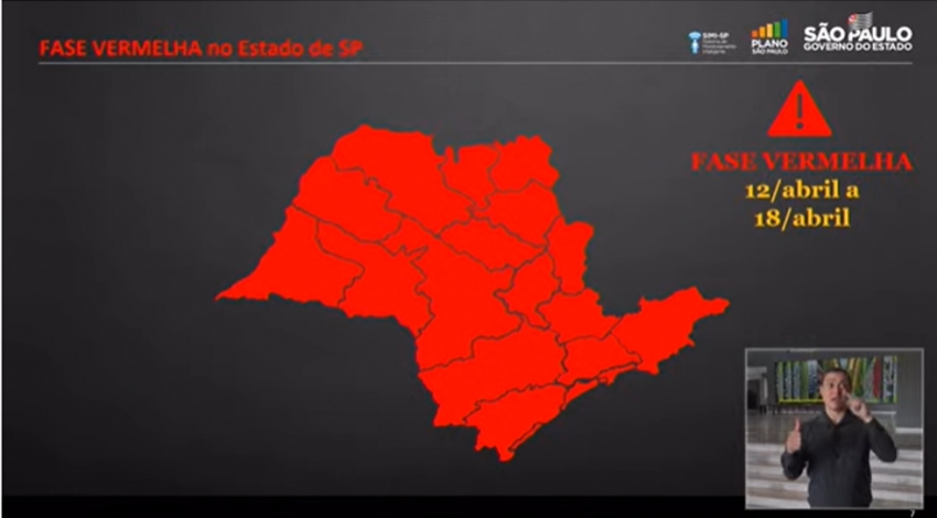 O estado de São Paulo retorna à fase vermelha da quarentena a partir da próxima segunda-feira (12). A medida permanecerá em vigor até o dia 19 de abril. O anúncio foi feito em coletiva de imprensa da gestão estadual nesta sexta-feira (9). Cada município deverá alterar o seu decreto para seguir as mudanças, como a possibilidade do sistema “Take Away” (retiradas de mercadorias), no comércio e shopping. O prefeito Lucas Pocay (PSD) deverá publicar novo decreto ainda nesta sexta-feira, 9. Confira o vídeo abaixo: