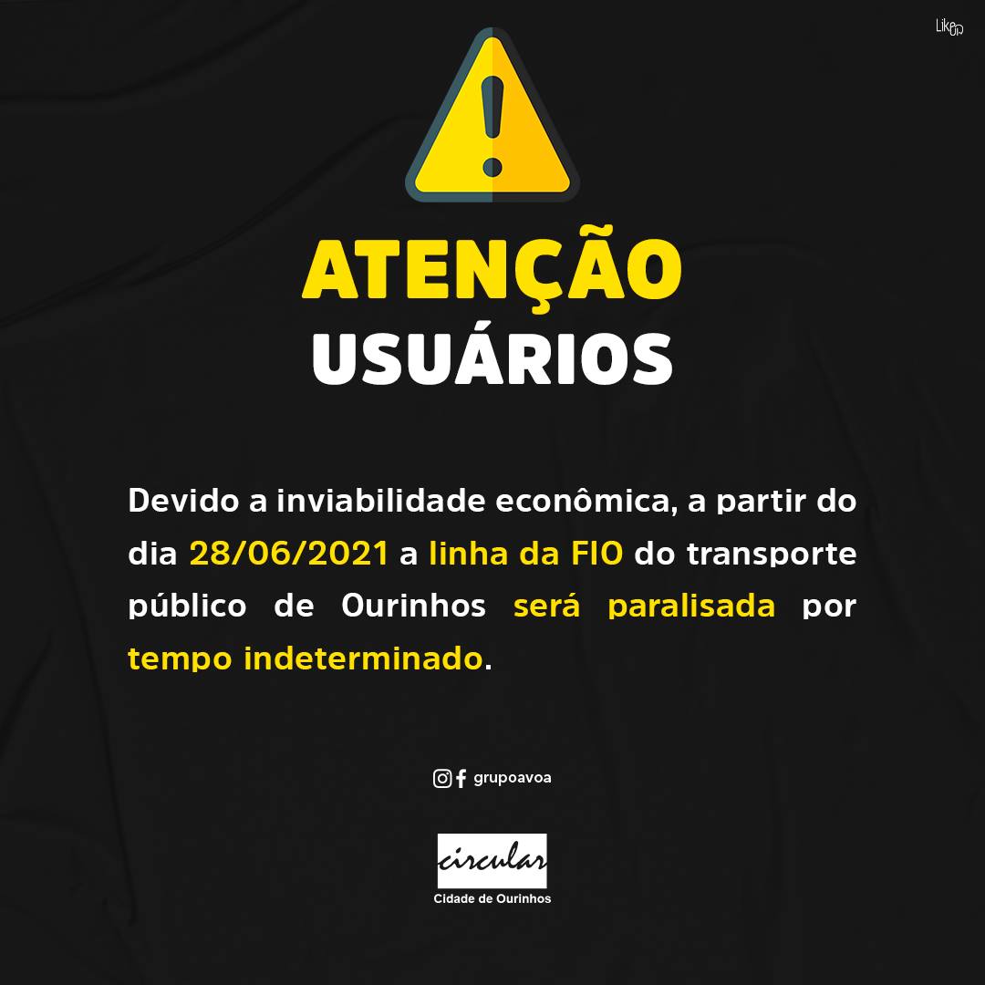 A empresa de ônibus Circular Cidade de Ourinhos, responsável pelo transporte público de passageiros na cidade, interrompeu por tempo indeterminado, a partir desta segunda-feira, 28, o funcionamento da linha de ônibus para o campus do Centro Universitário de Ourinhos (UniFio), que fica na BR-153, cerca de 10 km do centro de Ourinhos. De acordo com a empresa do grupo AVOA, a suspensão acontece devido a total inviabilidade financeira e econômica para sua manutenção. A crise financeira também ameaça o funcionamento de outras linhas, mas por enquanto estão sendo mantidas com pequeno número de ônibus.