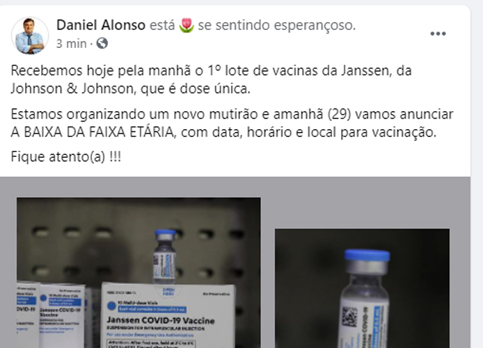 Enquanto a vacinação contra a Covid-19 está parada em Ourinhos desde a última sexta-feira, 25, o Governo de São Paulo informou que a região de Marília, a qual Ourinhos pertence, recebeu neste final de semana 6,8 mil doses da Janssen, vacina de dose única, que foram disponibilizadas pelo Ministério da Saúde (MS). Até o momento a Prefeitura de Ourinhos não se manifestou sobre essas doses. Confira a nota completa abaixo: